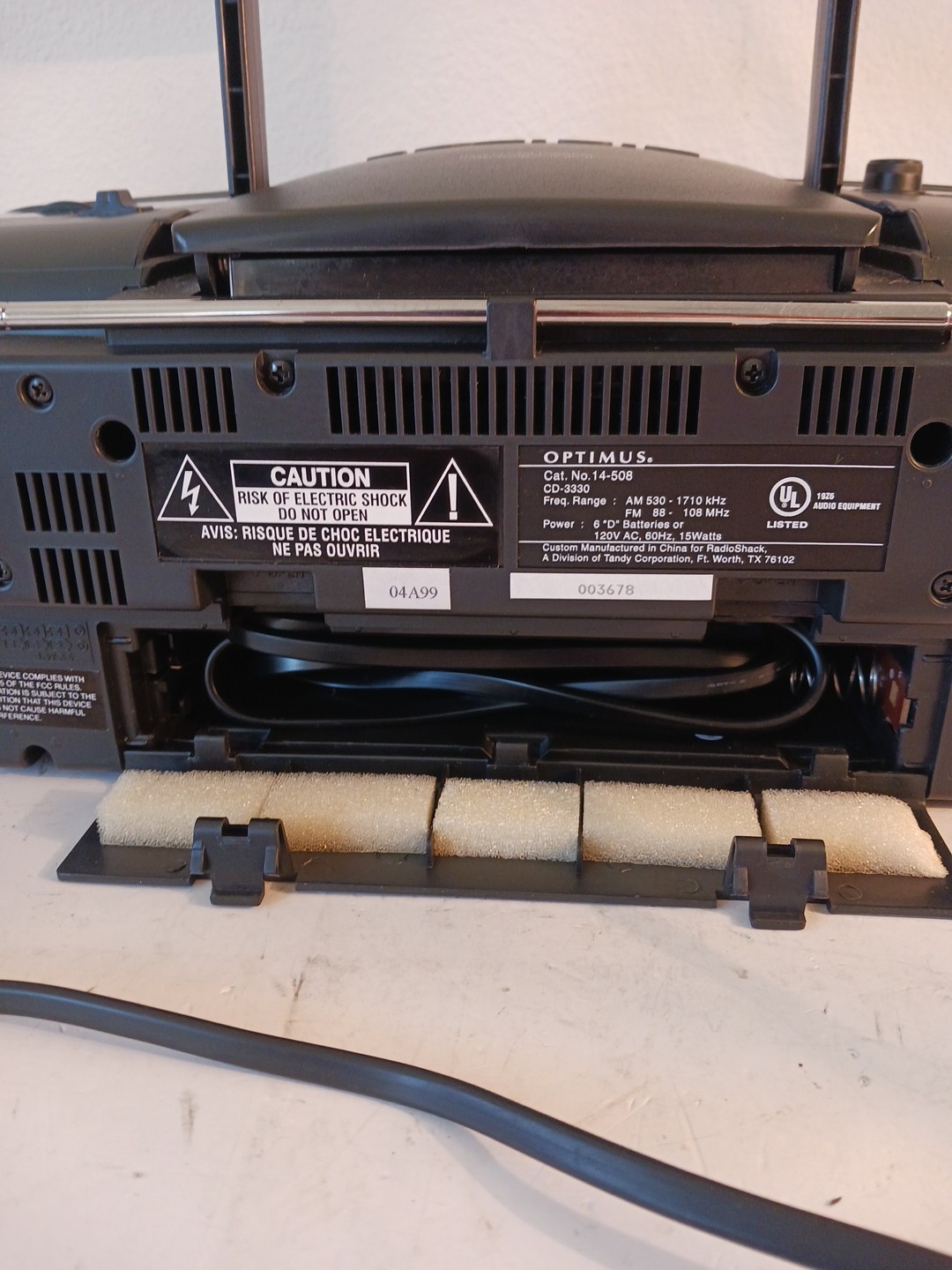 Optimus CD-3330 Compact Disc Player/Cassette Player/Recorder Cat No.14-508 Works