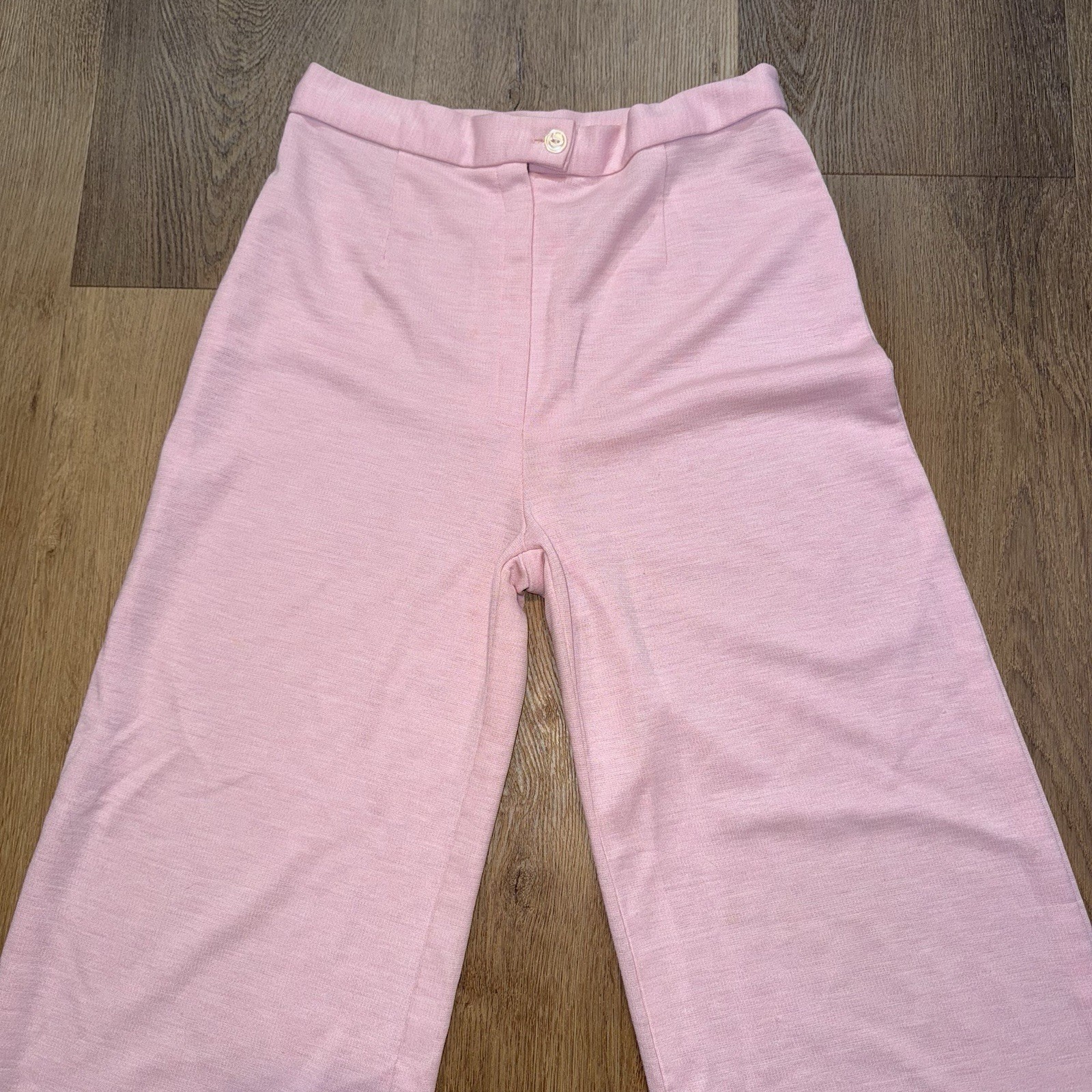 как выглядит Vtg 60s 70s Bell Bottom Pants Womens 29 29 Pink Stretch Polyester Disco Hippie фото