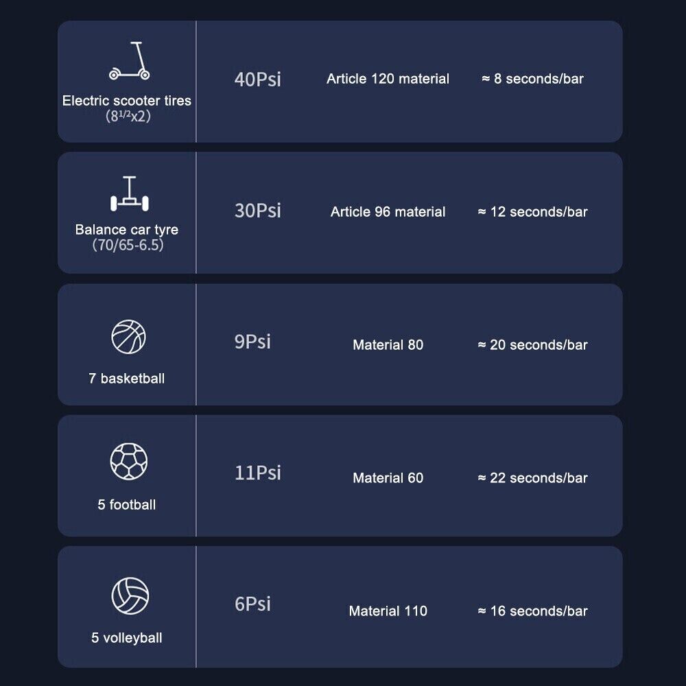 150 PSI Air Compressor Tire Inflator Fits Car Moto Bike Tires Air Pump Cordless