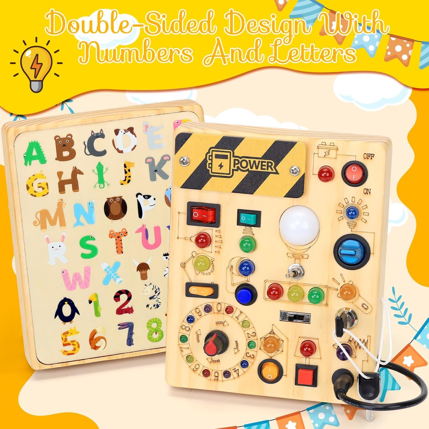 Montessori Toddler Busy Board Wooden Toys for 1-3 Years Old Sensory Toy LED