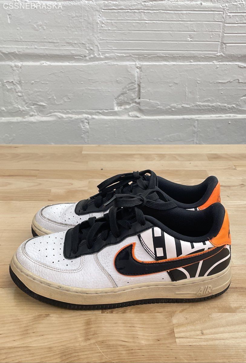 Nike Multi AIR FORCE 1 White Black Orange Low Top Sneaker Size - Size 5Y