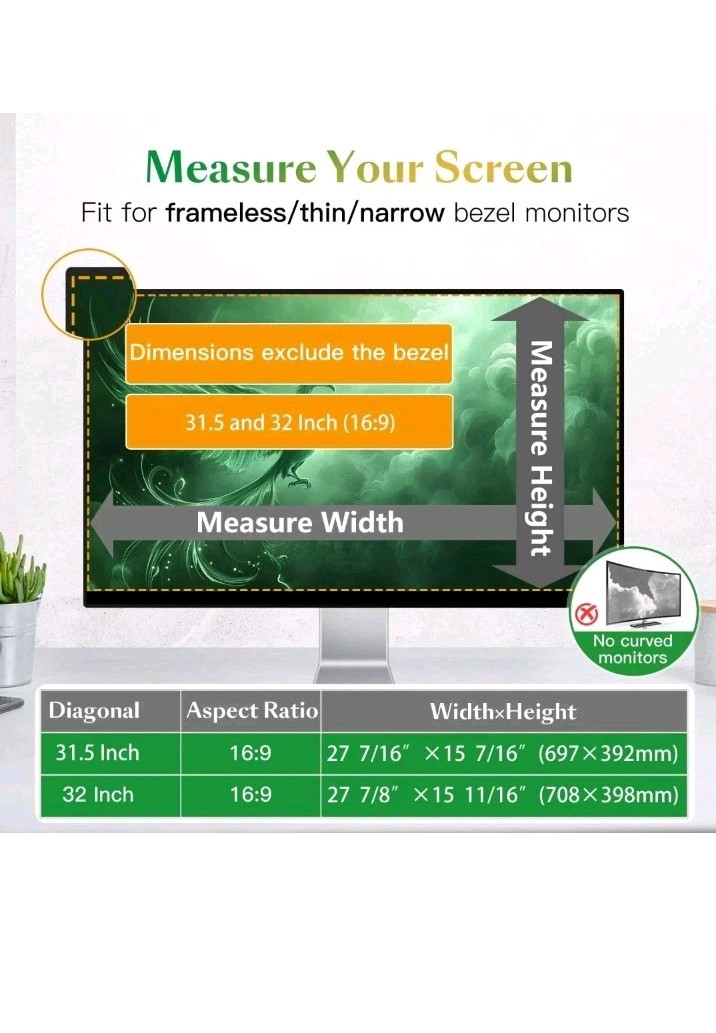 Magnetic 32 inch Computer Privacy Screen Filter for 16:9 Widescreen Monitor D...