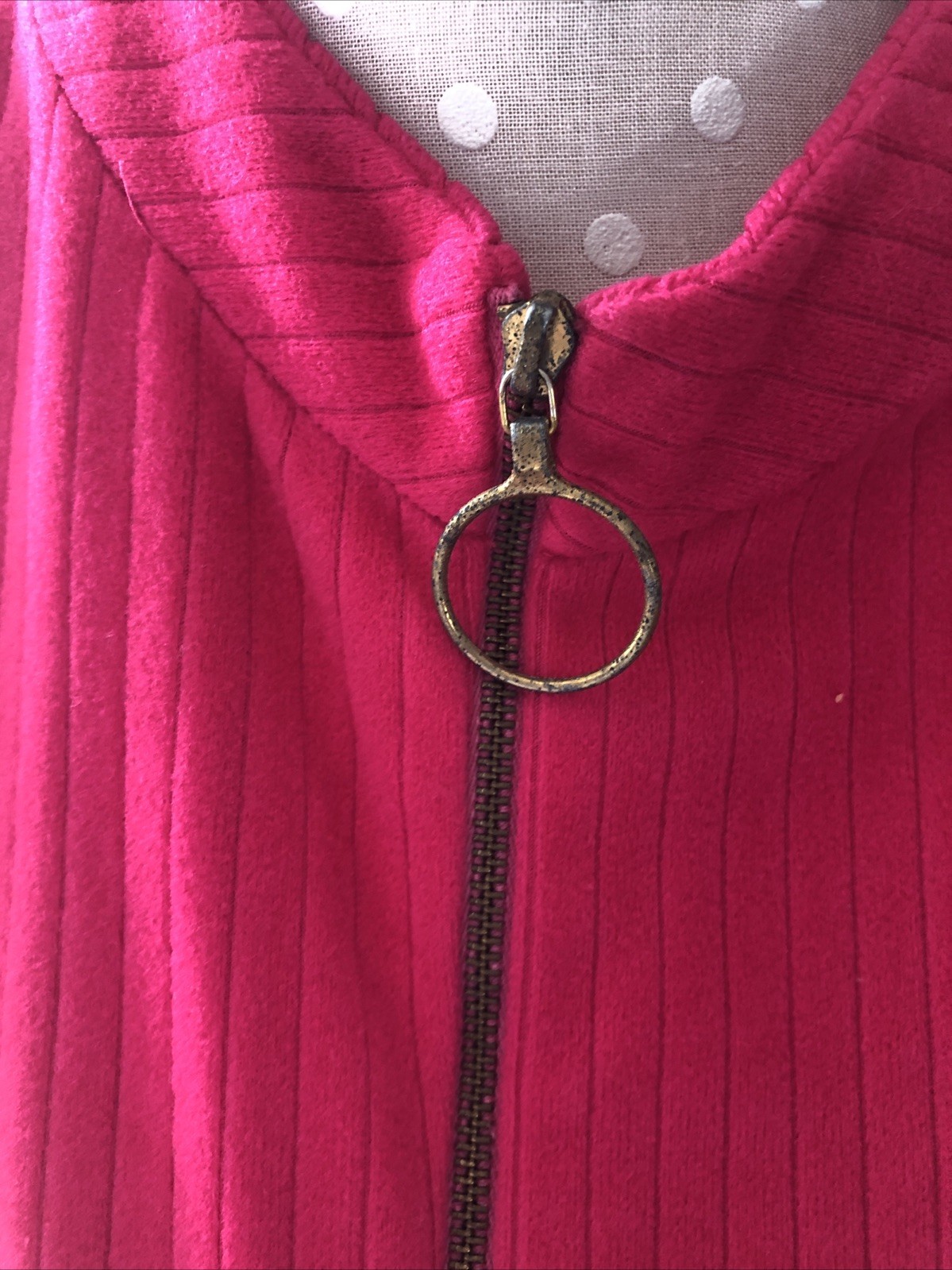 Vintage Vassarette Fleece Robe House Coat 3/4 Zip Hot Pink USA Women s Small