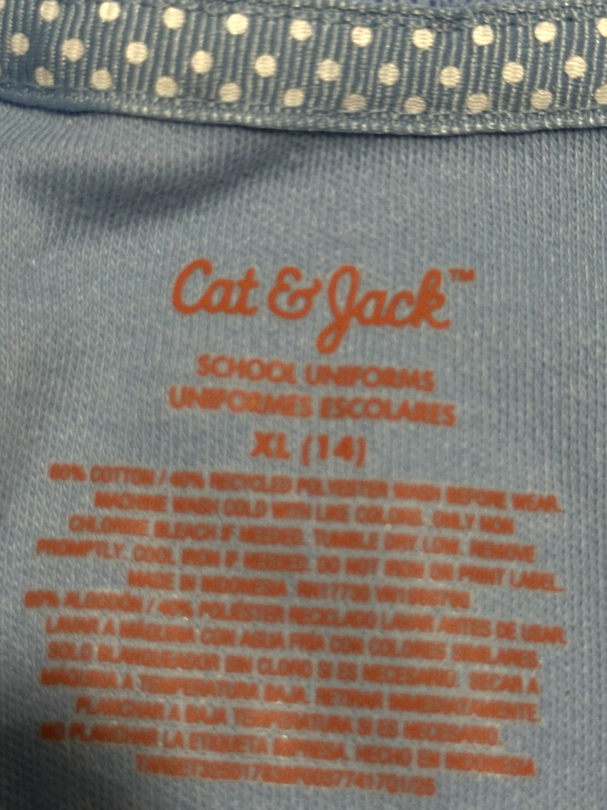 NWT Girls XL 14 Cat Jack LIGHT BLUE Short Sleeve School Uniform Polo Shirt Top