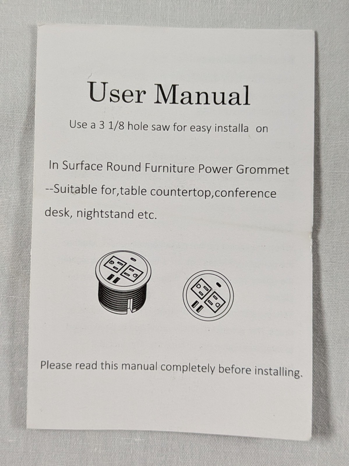 Desk Power Grommet PD 20W USB C 3 inch Desktop Recessed Power Outlet Socket 2 AC