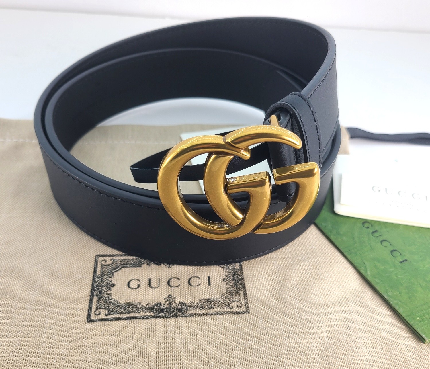 как выглядит New Authentic Slim Black Leather Gucci Belt w/ Small Gold Buckle 90/36 фото