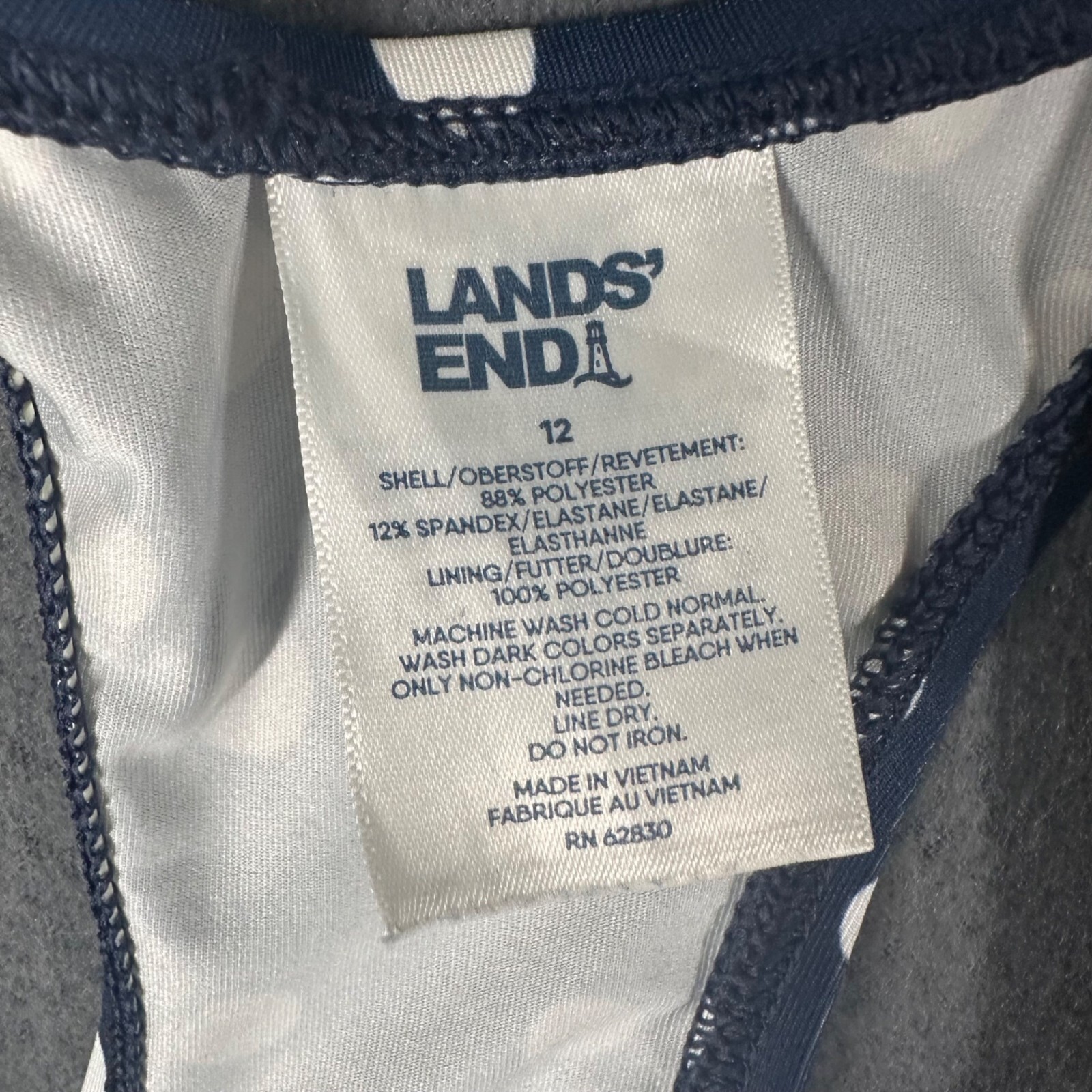 как выглядит Lands End Girls 12 Navy Blue Polka Dot Racerback Tankini Swim Top фото