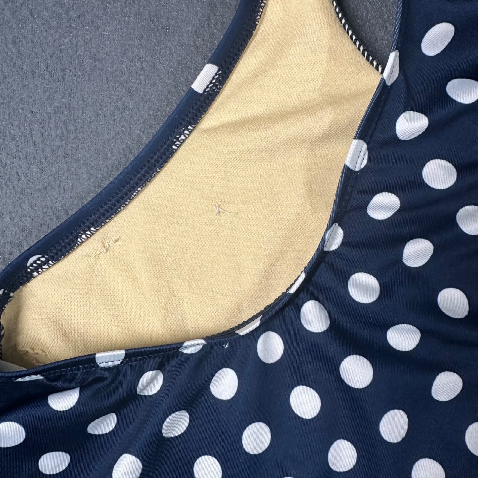 Lands End Girls 12 Navy Blue Polka Dot Racerback Tankini Swim Top