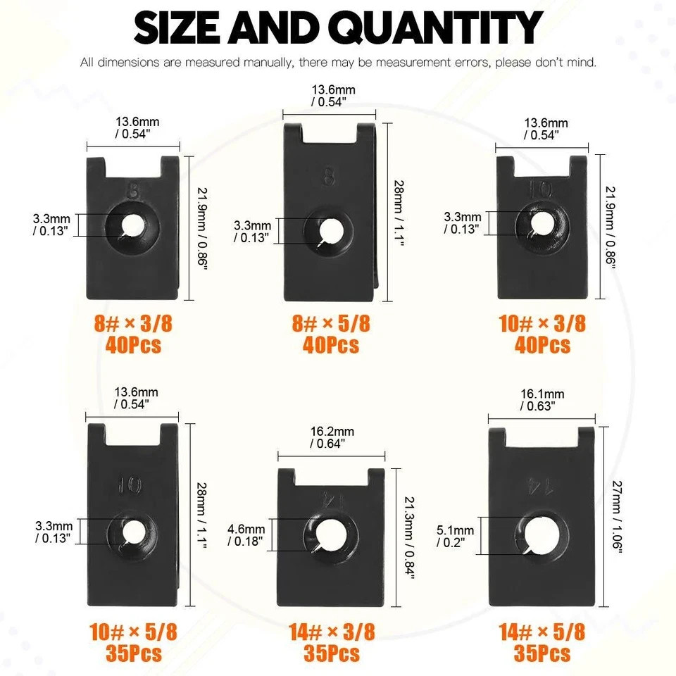 • 225 Pcs 6 Size SAE U-Nut Clip Assortment Auto Car Speed Nuts Fastener with Store