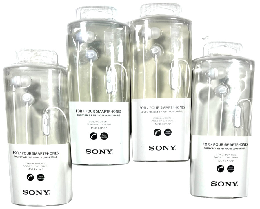 Sony Stereo Headphones Earbuds White - Noise Isolation Mic - Smart Phone - 4Pk