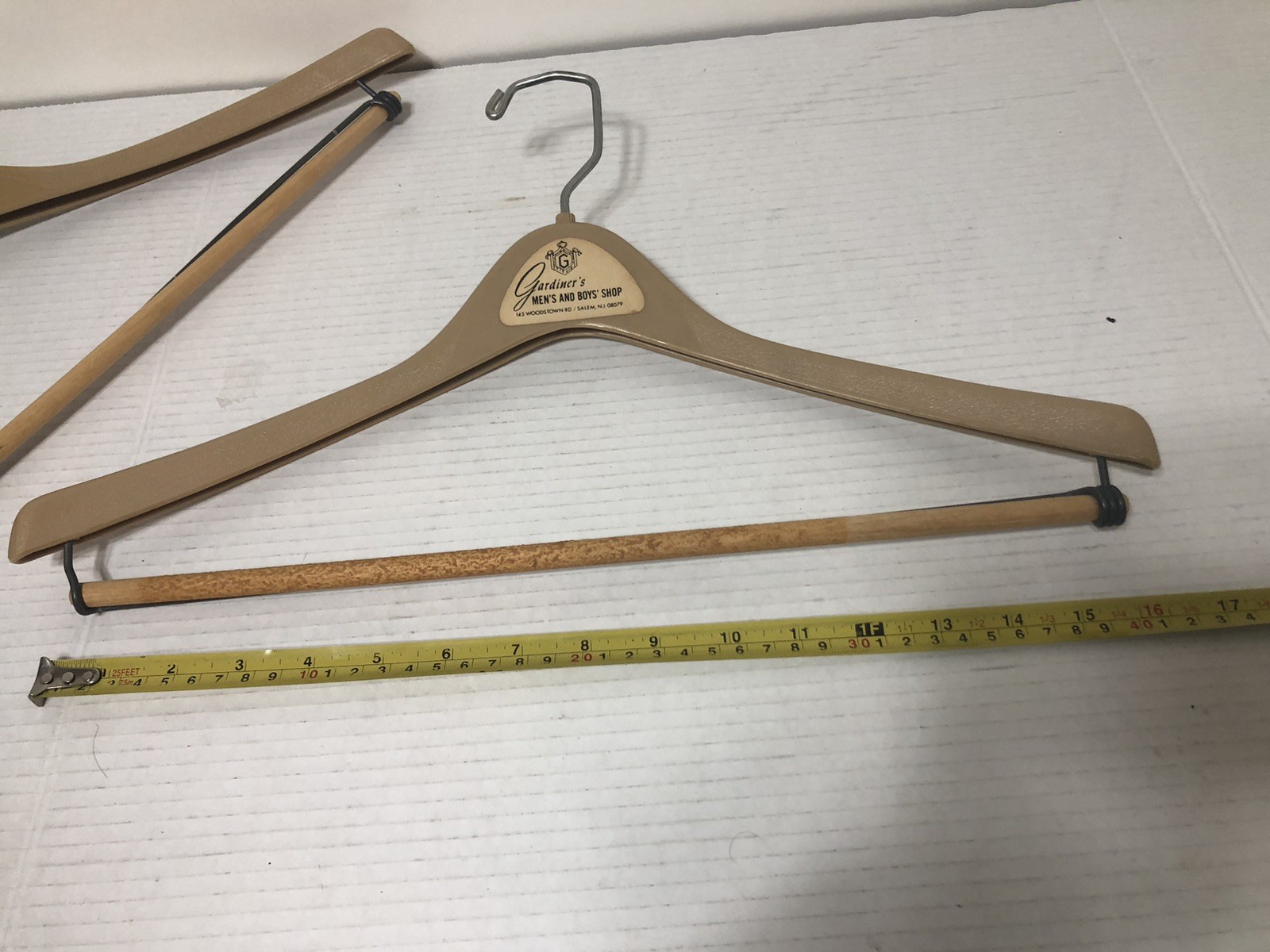 2 vintage clothes hangers Plastic Spinosi Gardener s Woodstown Salem N. J.
