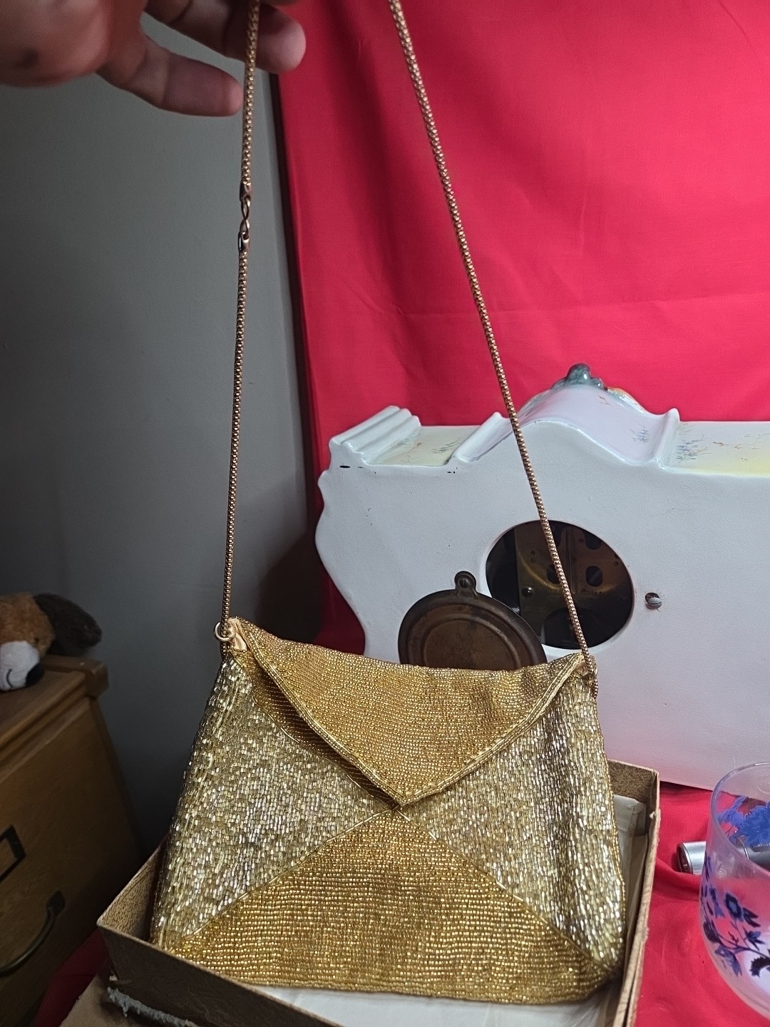 как выглядит VINTAGE WALBORG GOLD BEADED PURSE HANDBAG CLUTCH IN BOX SEE PHOTO DESCRIPTION фото
