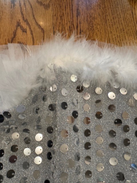 как выглядит Weissman Winter Dance Costume Girls Silver Sequin Faux White Fur Size 5-7 yr фото