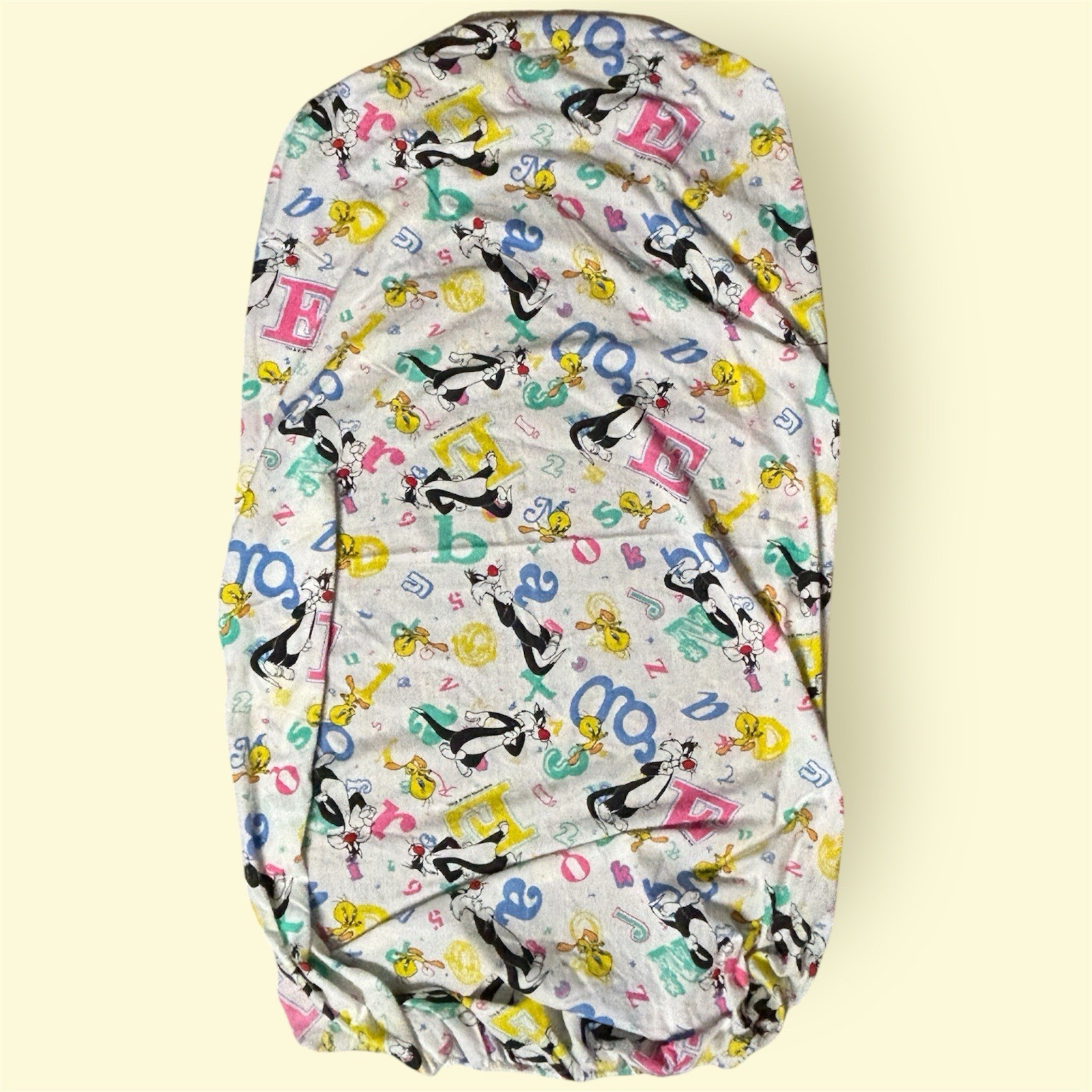 Vintage Looney Tunes Crib Quilt Flat Fitted Sheet Set Alphabet 90s Tweety USA