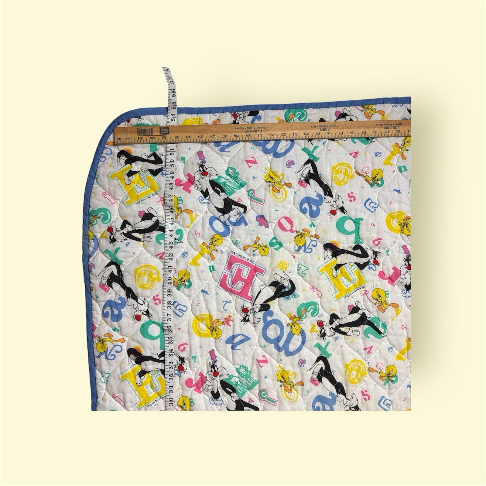 как выглядит Vintage Looney Tunes Crib Quilt Flat Fitted Sheet Set Alphabet 90s Tweety USA фото