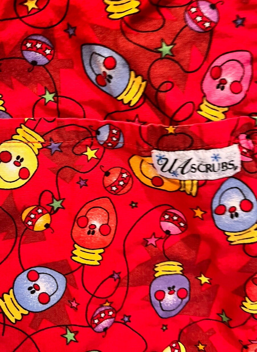 UA SCRUBS Uniform Advantage Red Holiday Christmas Lights Scrub Top Size Small