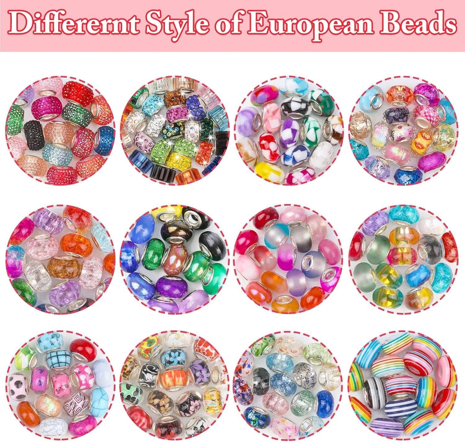 как выглядит Large Hole Glass Beads for Jewelry Making, 224PCS European Beads Bulk Mixed C... фото
