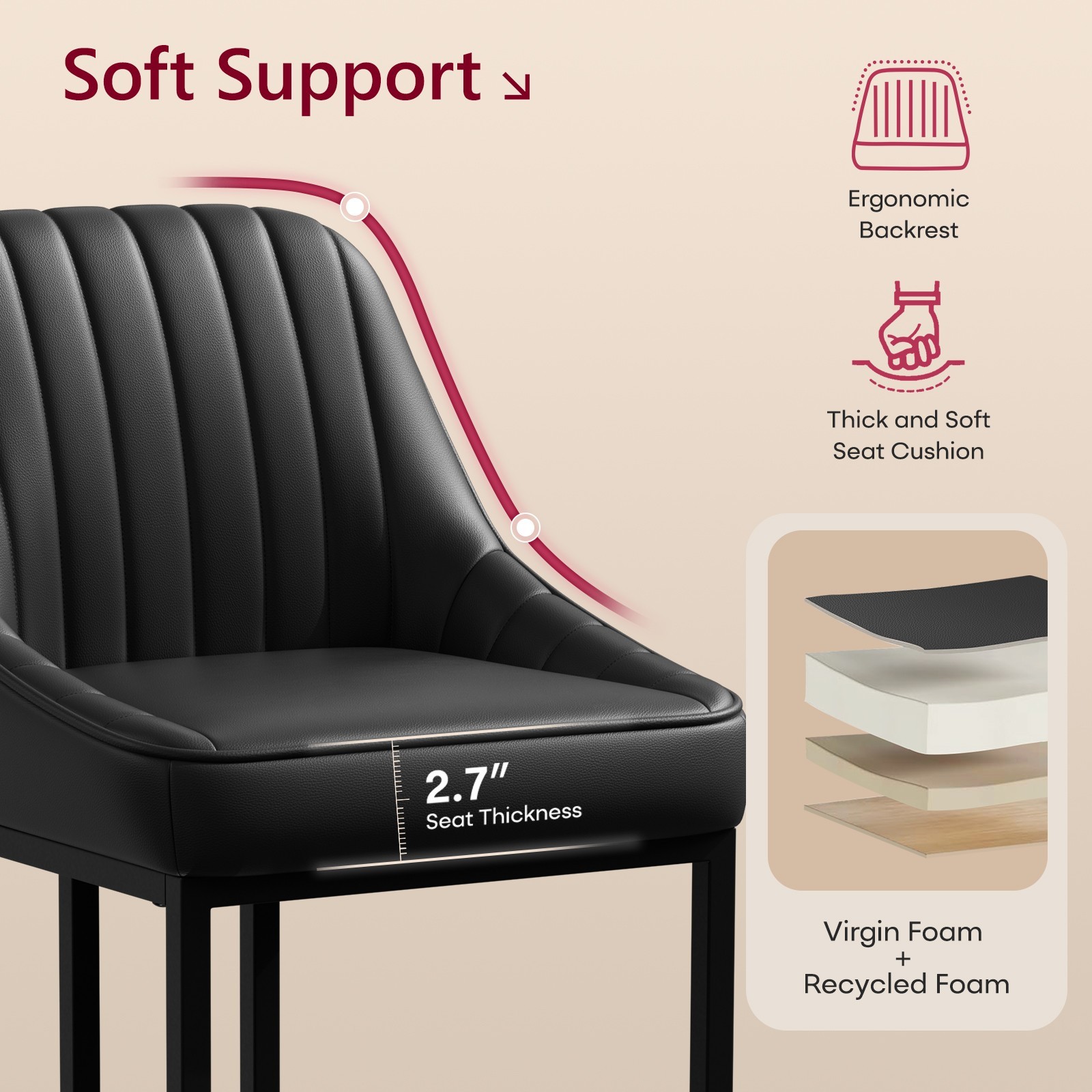 Bar Stools 24 Set of 2/4 Counter Height PU Leather Chair with Back for Kitchen