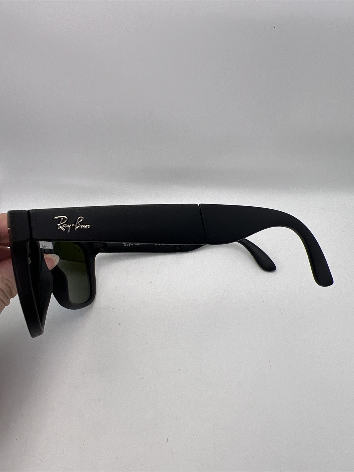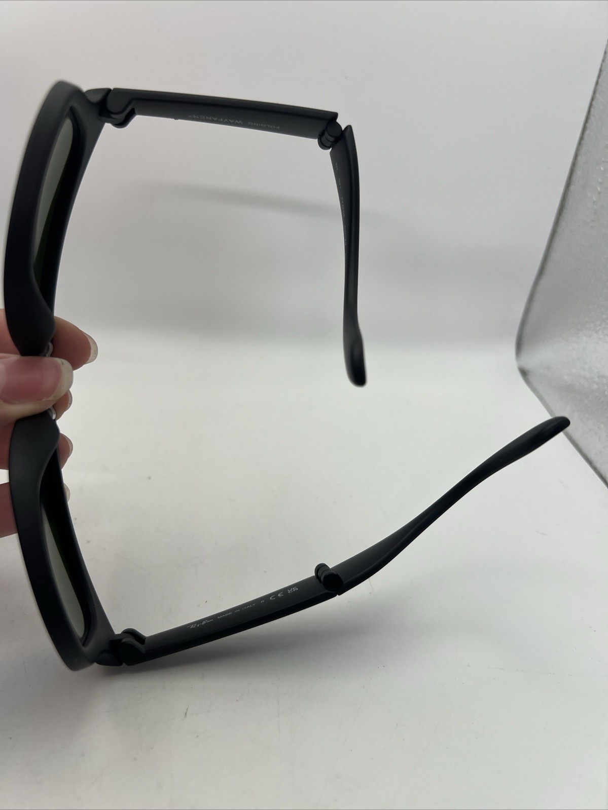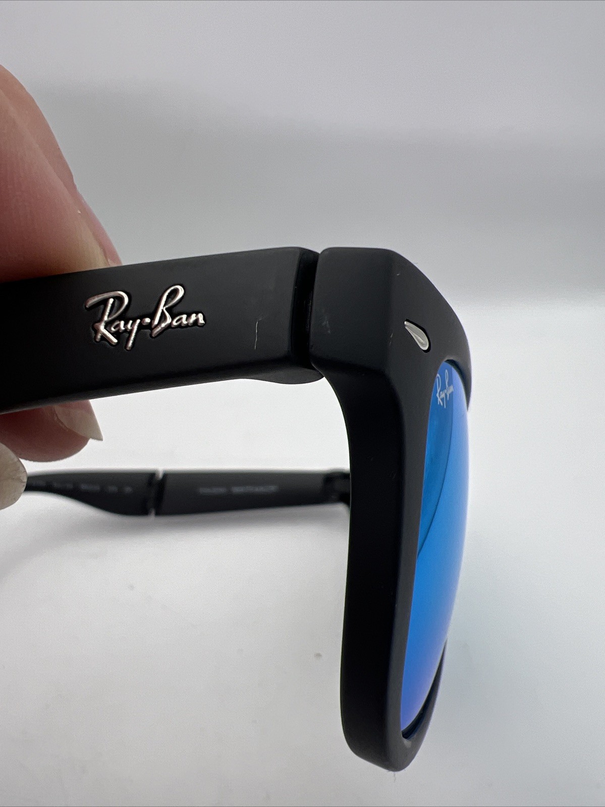 как выглядит Ray-Ban Folding Wayfarer Sunglasses Sand Black Frame Dark Blue Mirror Len RB4105 фото