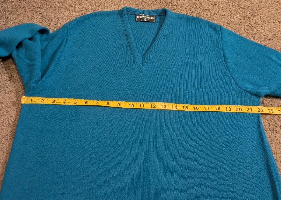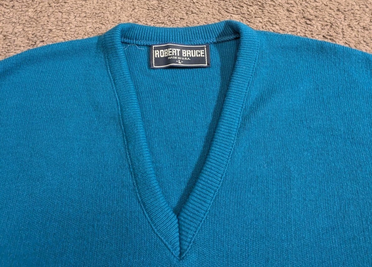 как выглядит Vintage Robert Bruce Long Sleece V-Neck Sweater Union Made in USA Men