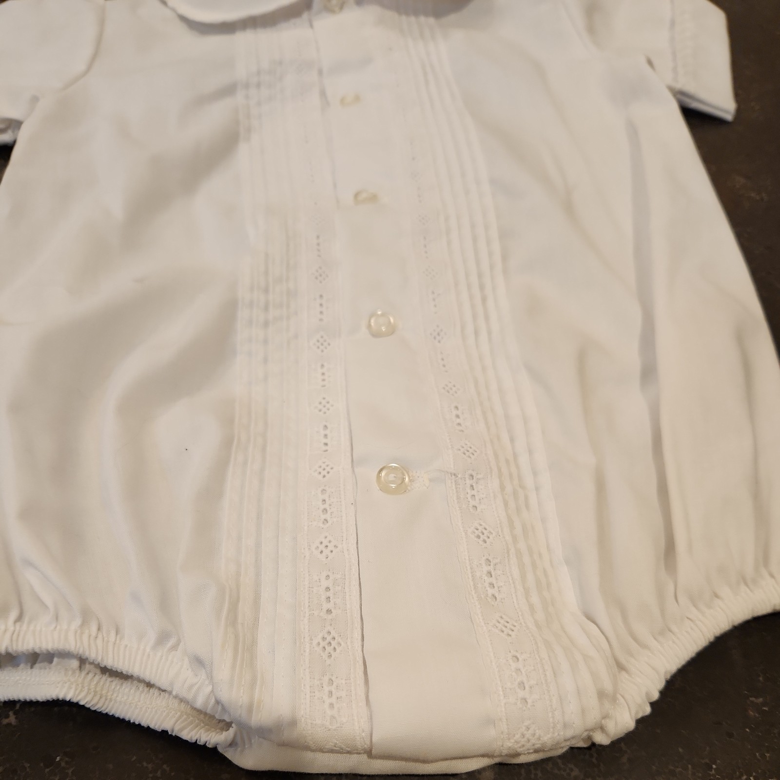 Vintage Alexis Baby Boys 6 Months Baptism One Piece Romper White Match Hat