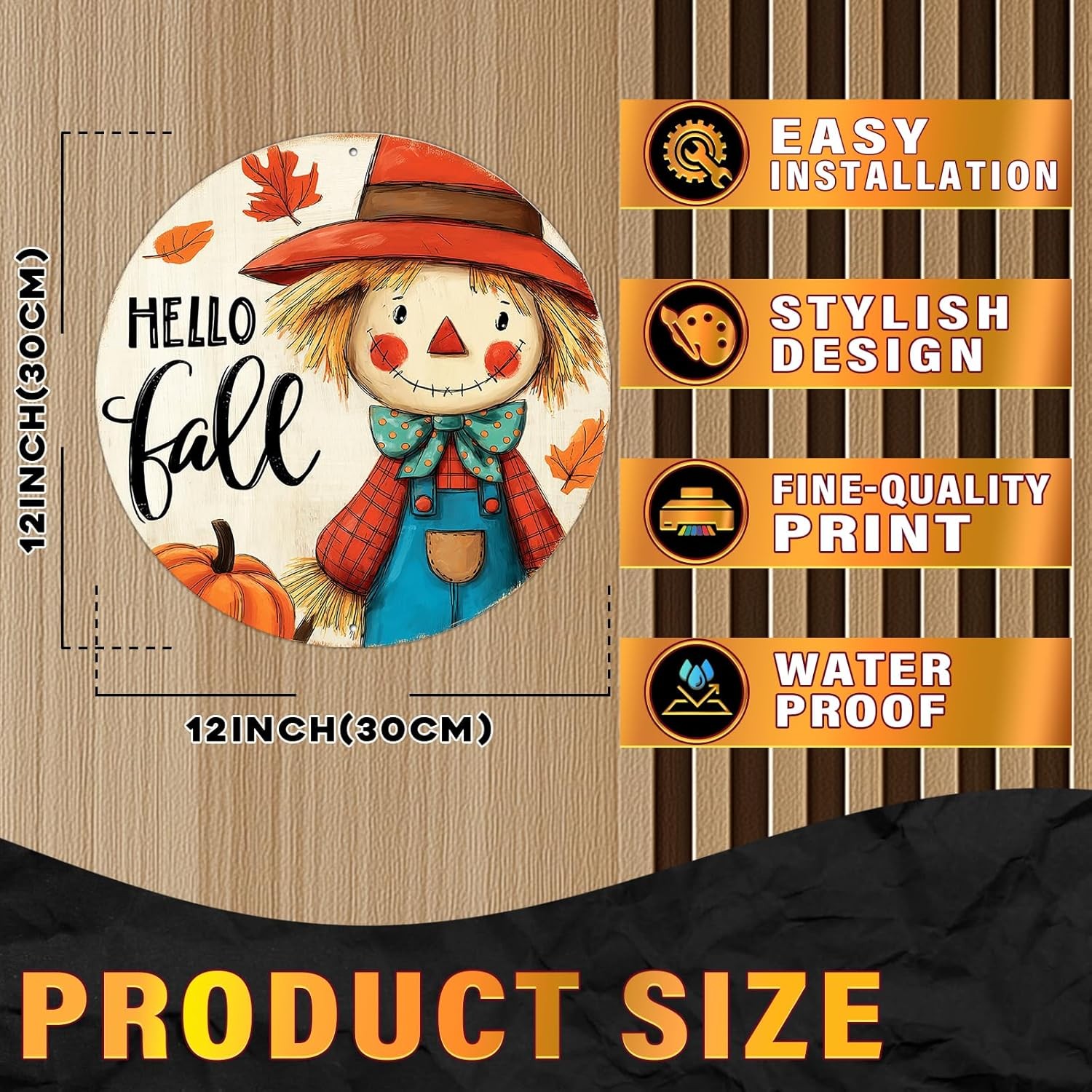 как выглядит Round Fall Welcome Pumpkins Wreath Tin Metal Signs Home D cor 8x8 фото