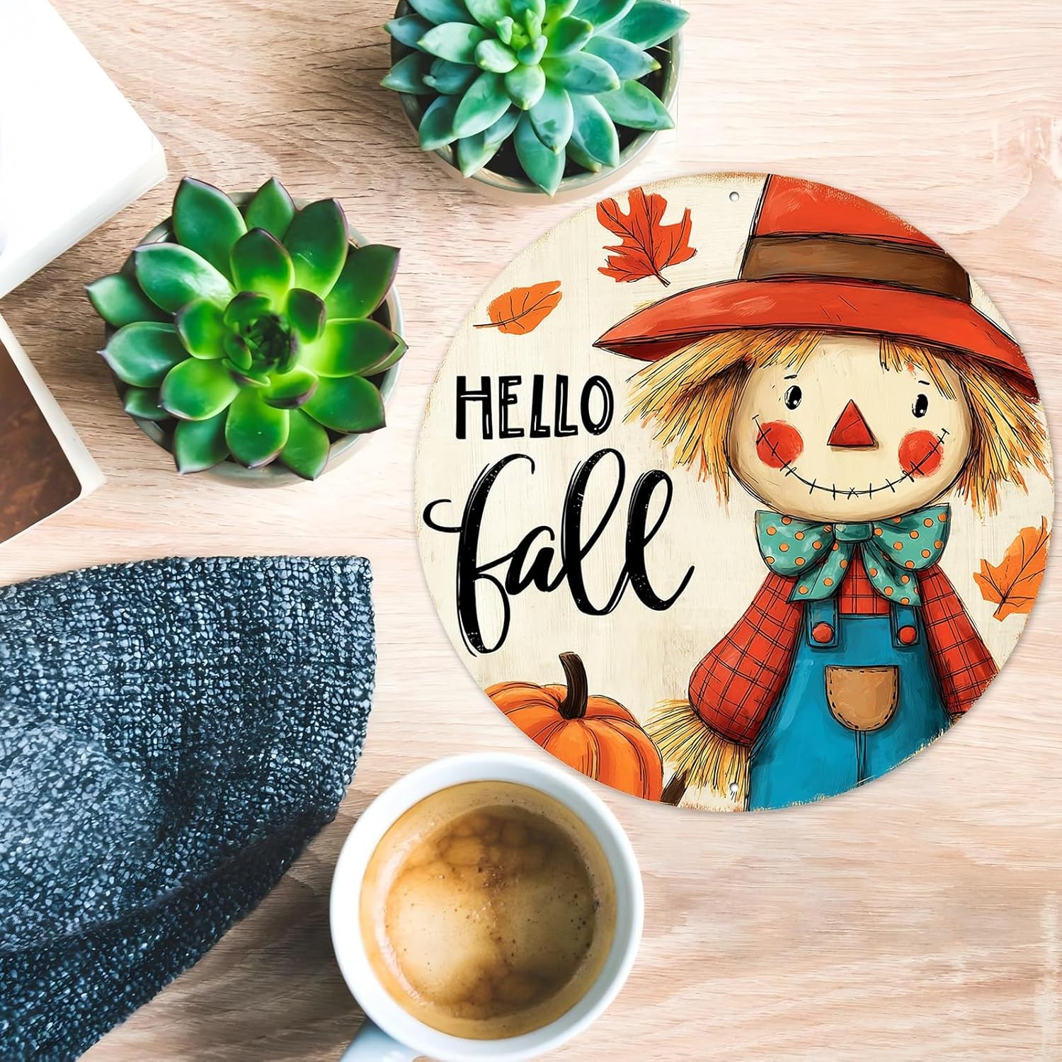 Round Fall Welcome Pumpkins Wreath Tin Metal Signs Home D cor 8x8