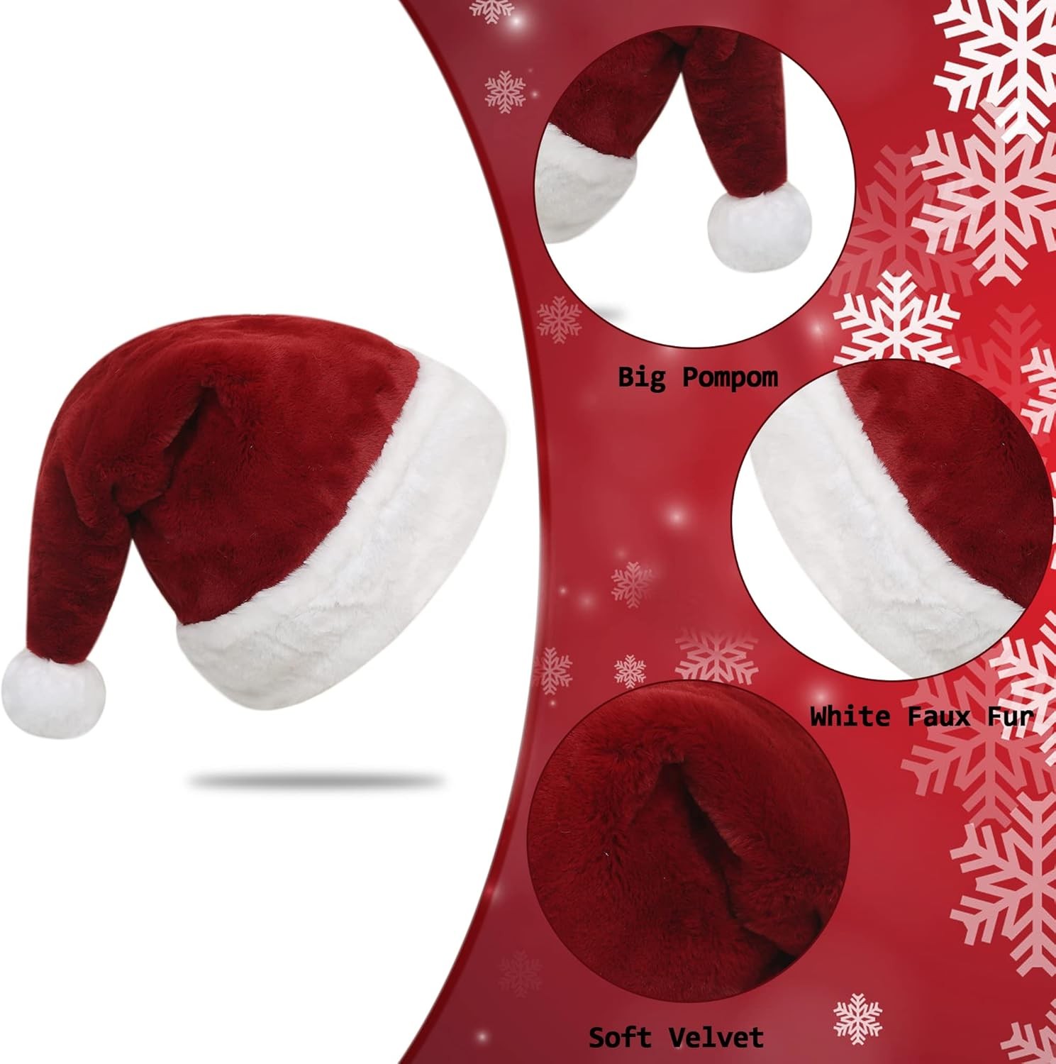 Santa Hats, Hat for Adults, Unisex Plush Cuffs Fabric Wine Red