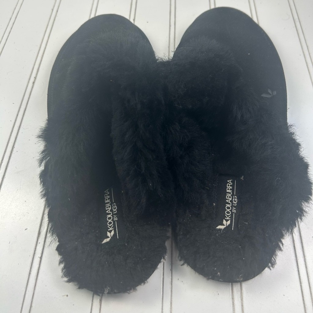 Koolaburra by UGG Black Faux Fur Slide Slippers Women's Size 10