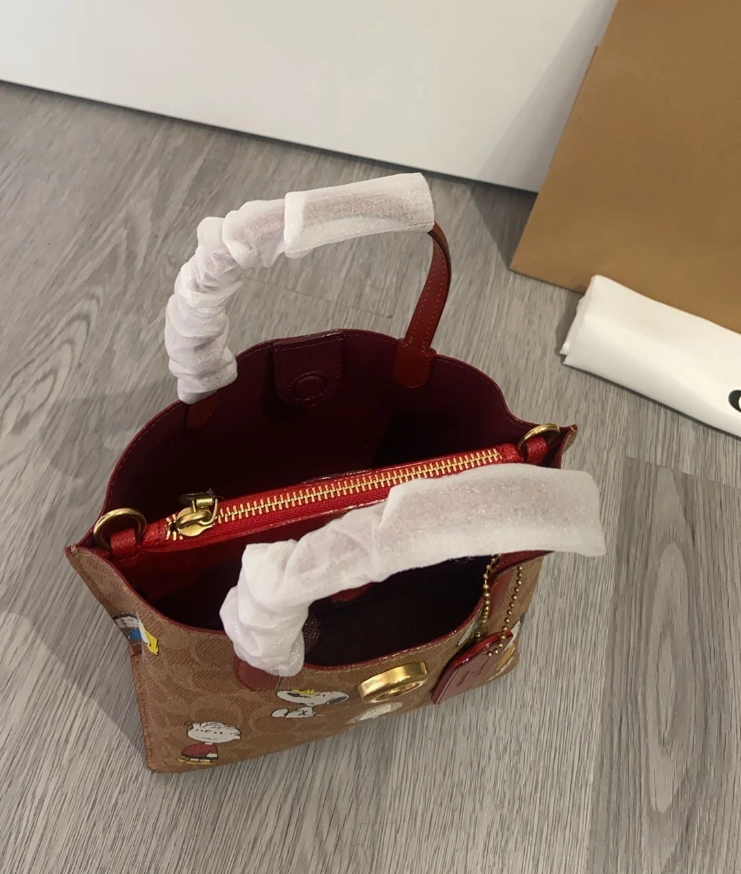 как выглядит NWT Coach X Peanuts CBF74 Willow Tote Bag 18 Signature Canvas Leather New фото