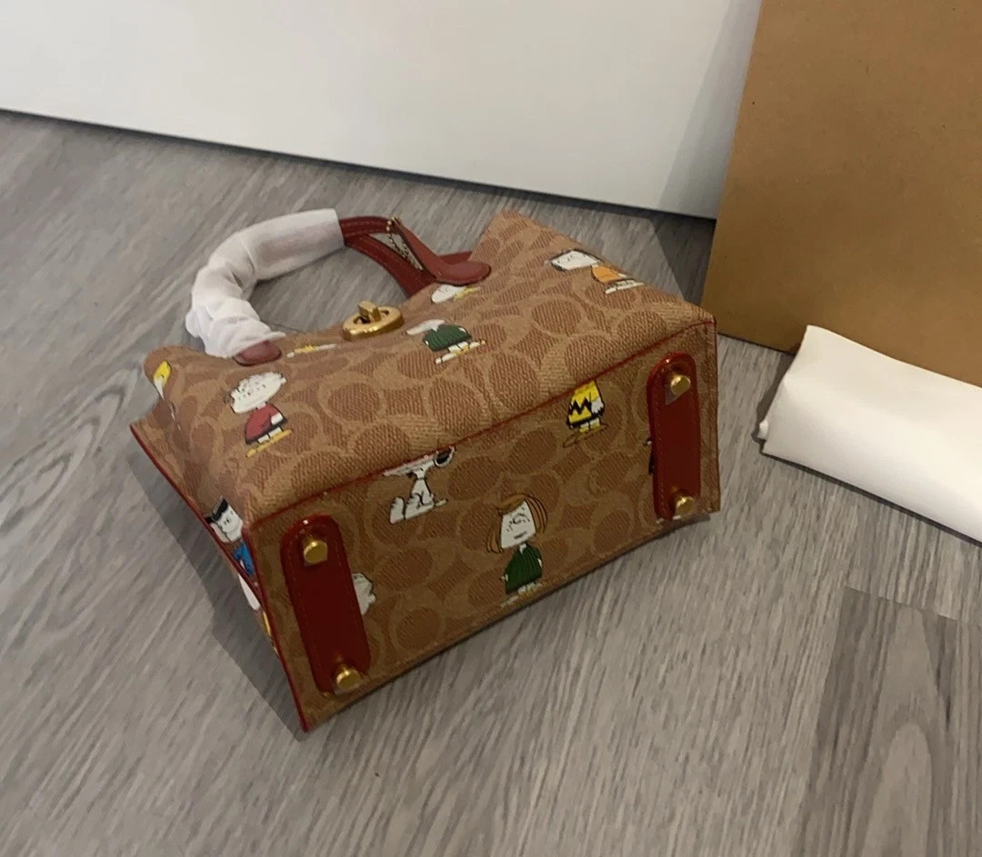 NWT Coach X Peanuts CBF74 Willow Tote Bag 18 Signature Canvas Leather New