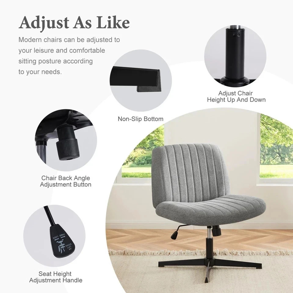 Criss Cross Chair Legged, Armless Office Wide Desk Chair No Wheels, Swivel Va...