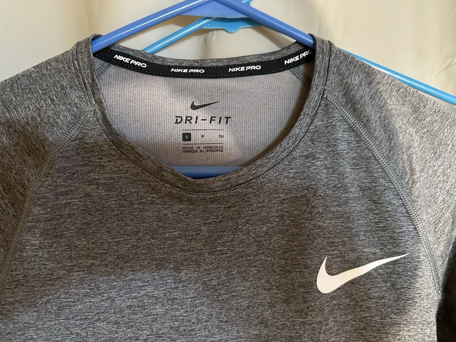 Men s Nike Dry Fit Uv Protecting Short Sleeve Gray Running Top Swoosh Logo S