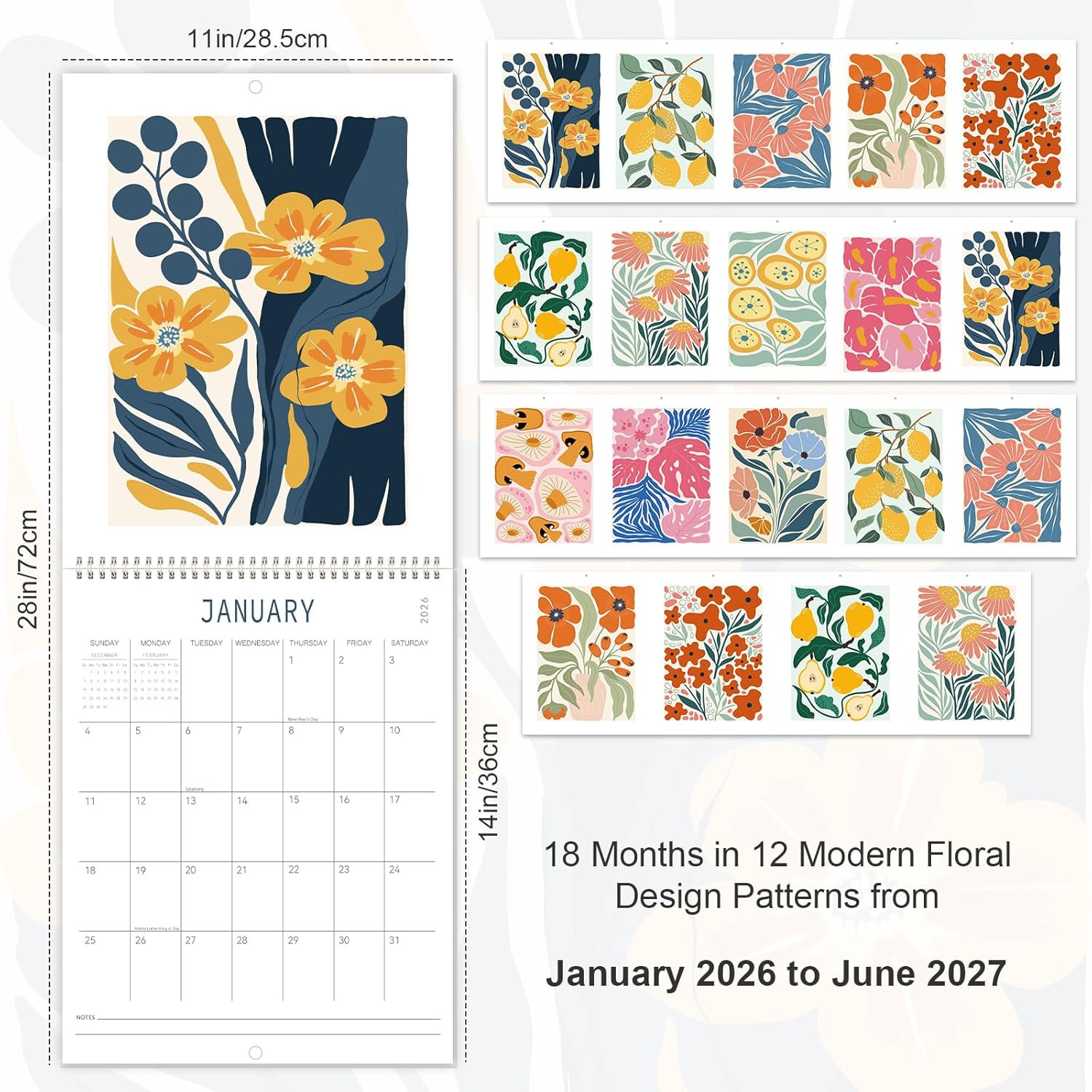 • Wall Calendar 2026-2027, Vertical Calendar Wall 2026, 18-Month Aesthetic Cale...