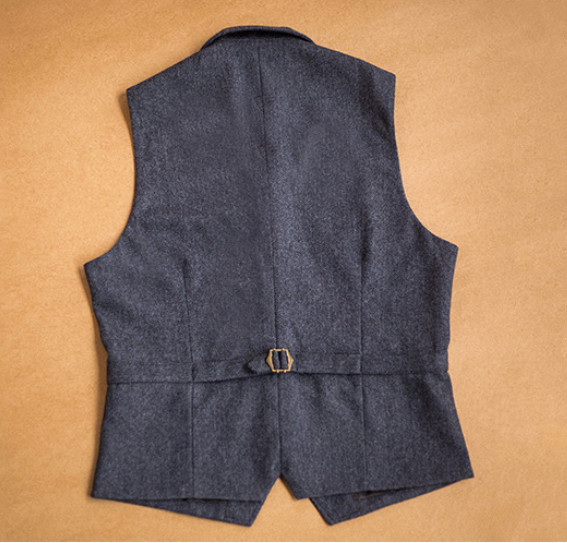 Men's Retro Herringbone Wool Blend Vest Lapel Suit Waistcoat Casual Gilet Tops