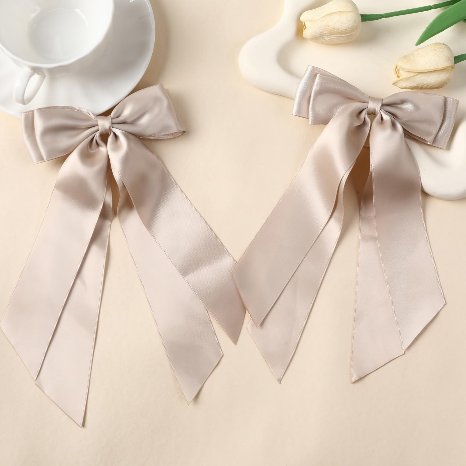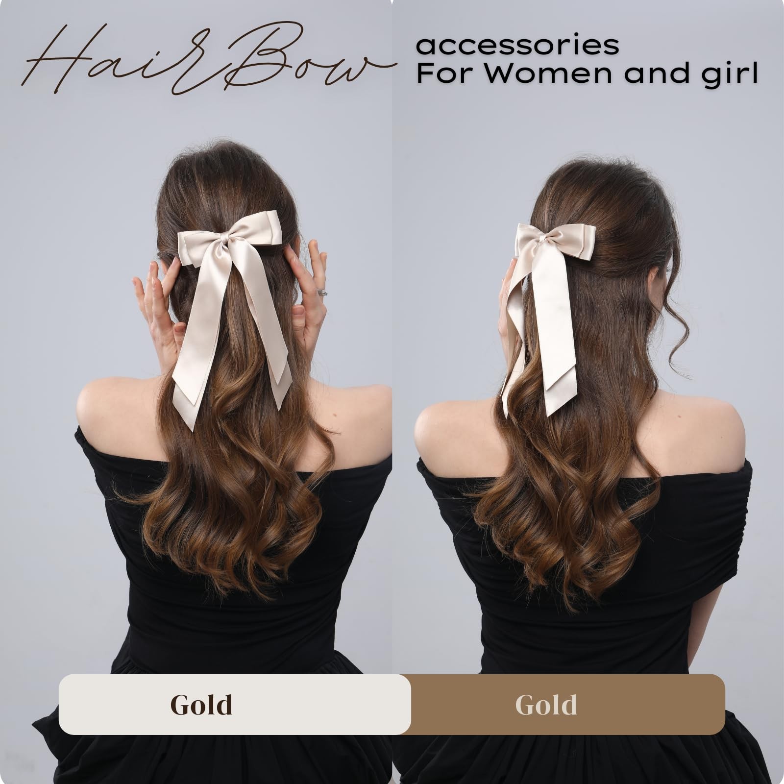 2 PCS Double Layer Hair Bows Gold Hair Ribbon Clips Ponytail Holder Accessori...
