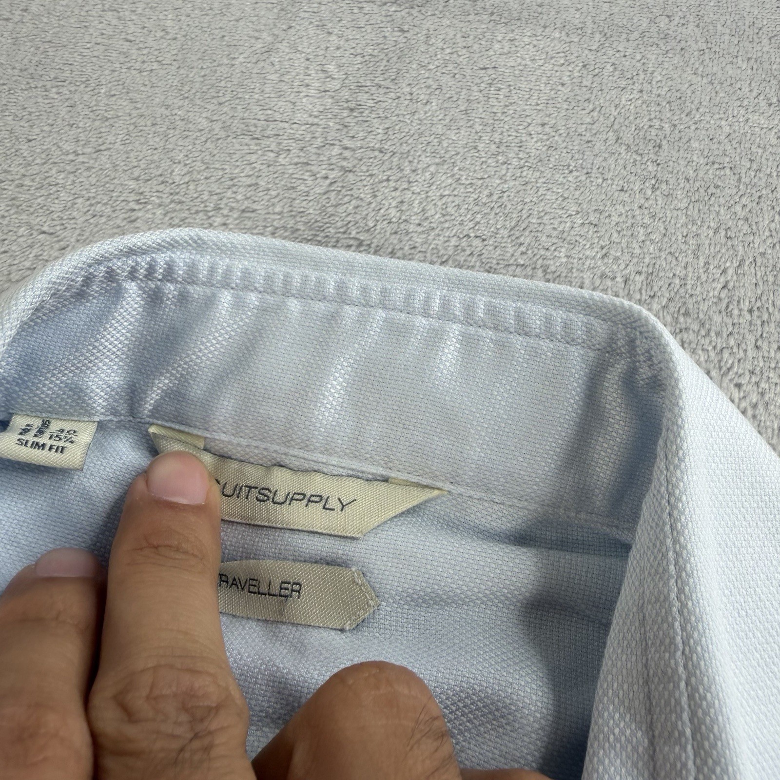 Suitsupply Traveller Long Sleeve Button Up Shirt Mens 40 15.75 Slim Fit Blue