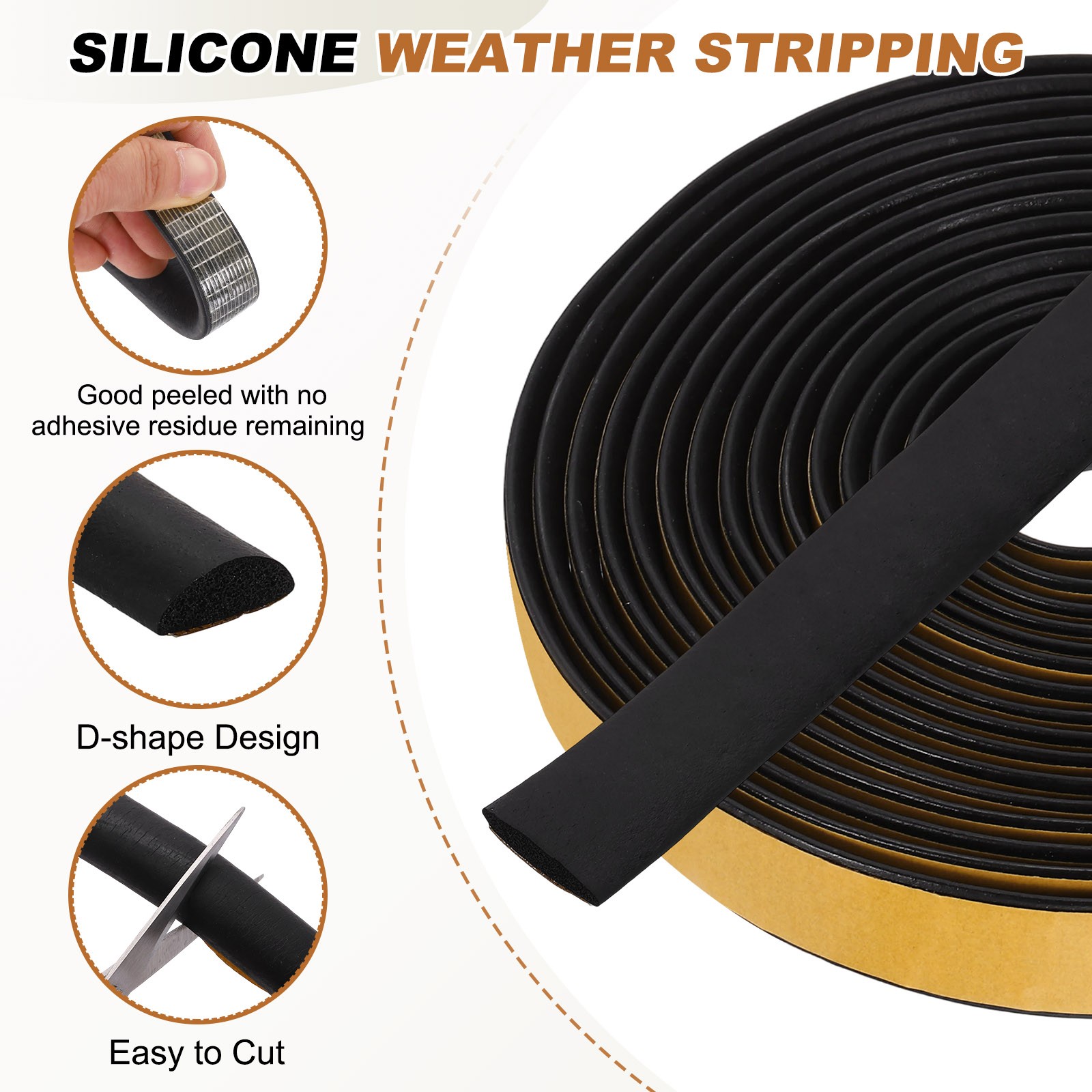 16.4FT Solid Rubber Weather Stripping, Self Adhesive EPDM Seals Strip