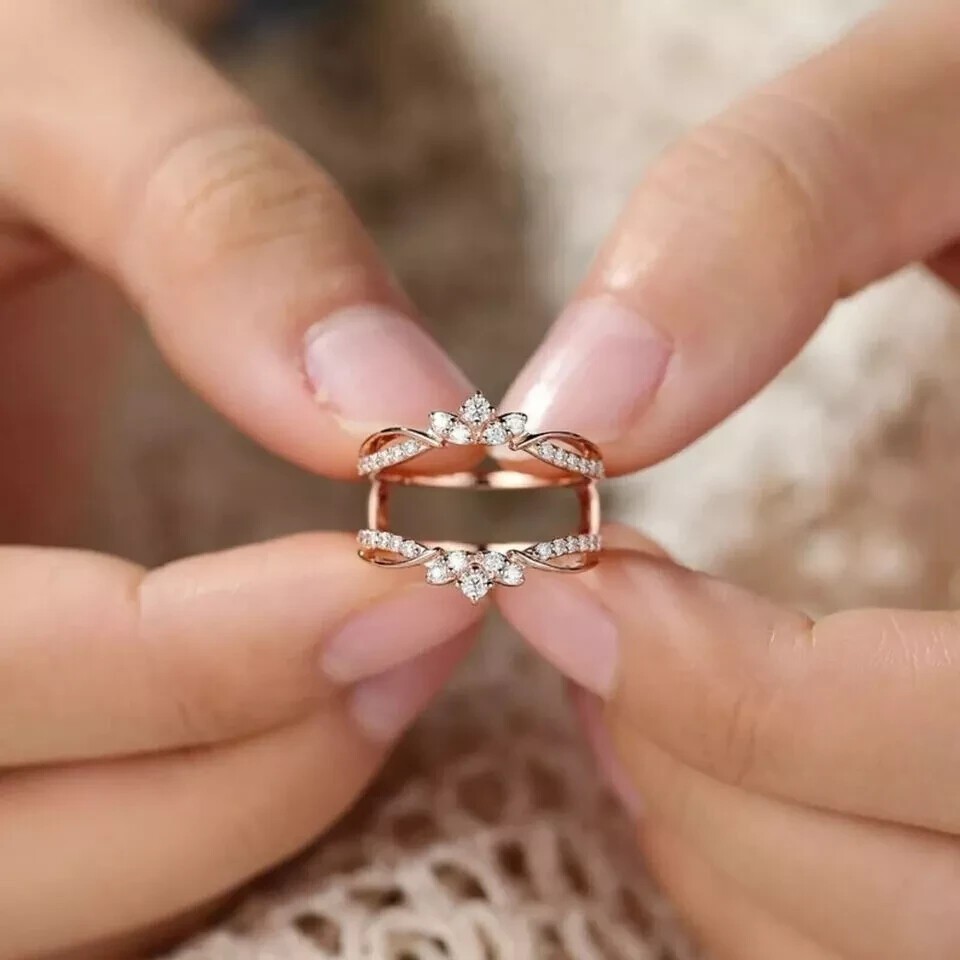 как выглядит Round Cut Simulated Diamond Engagement Wedding Band Ring In 14k Rose Gold Plated фото