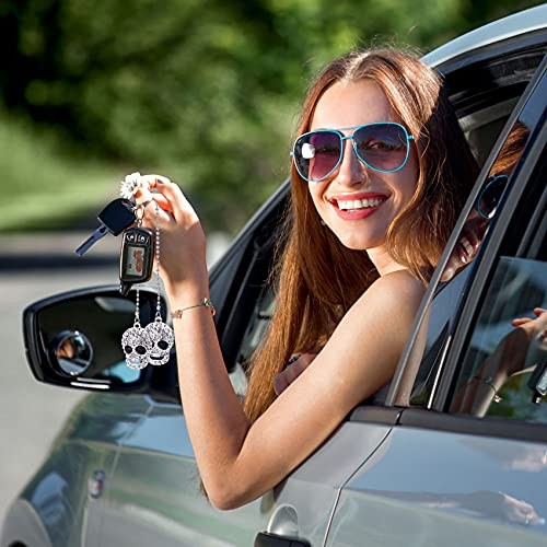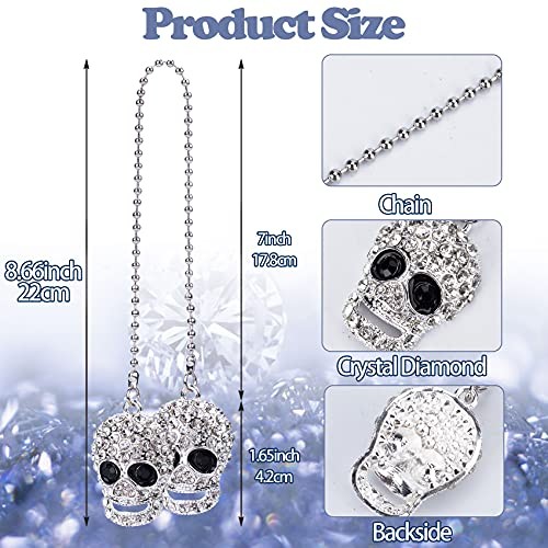 OIIKI Bling Car Accessories, Crystal Rhinestone Diamond Skull Hanging Charm,