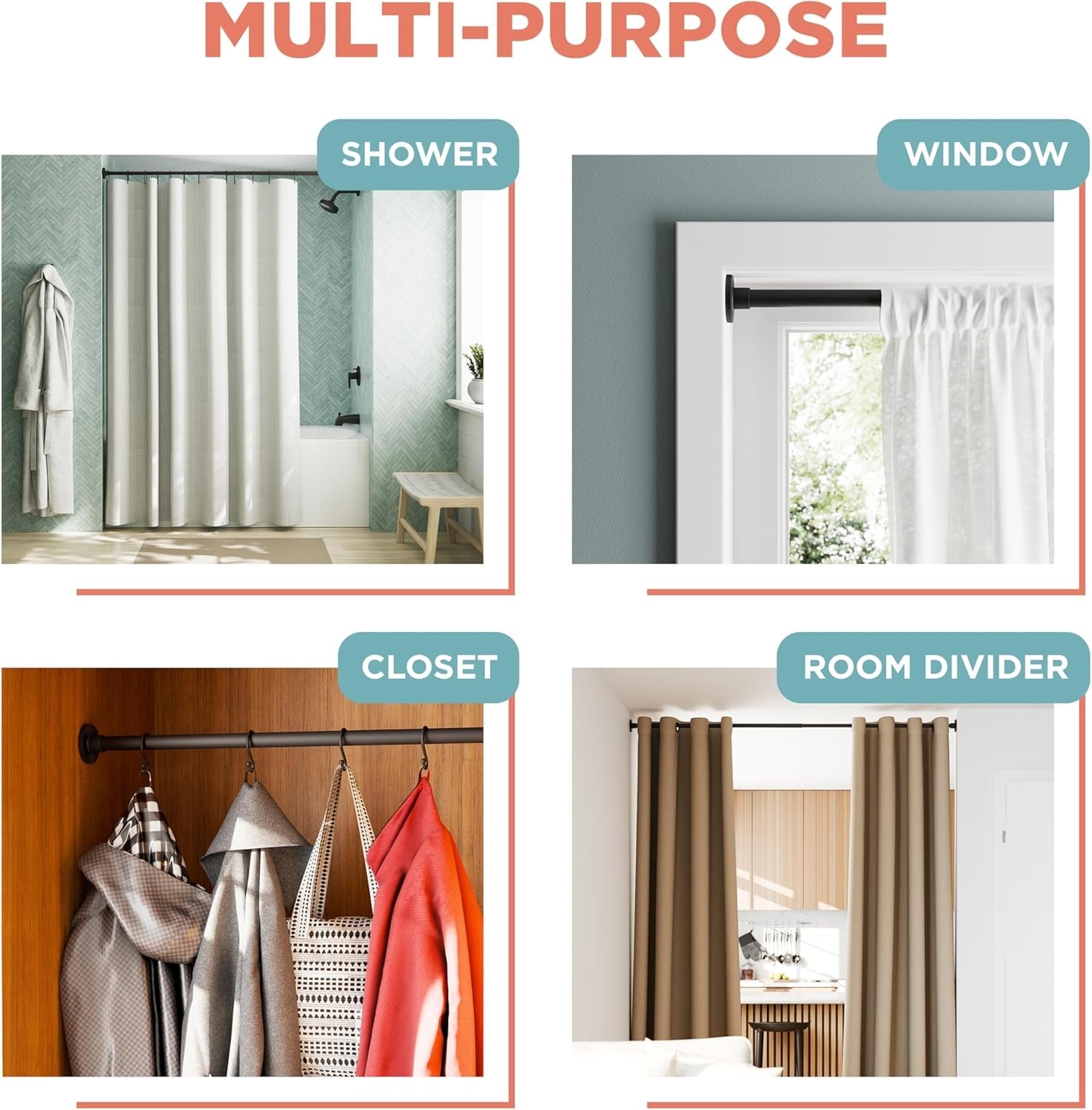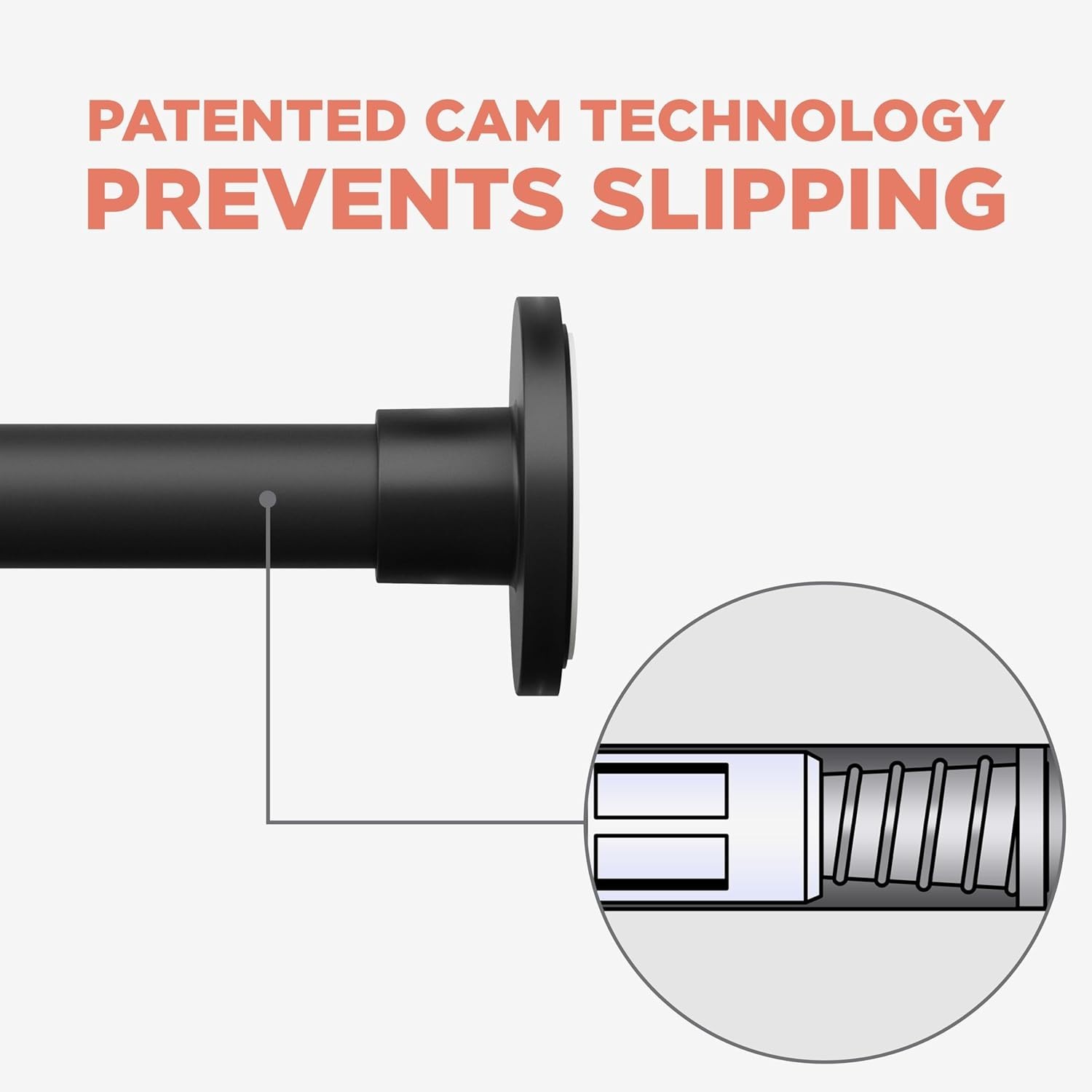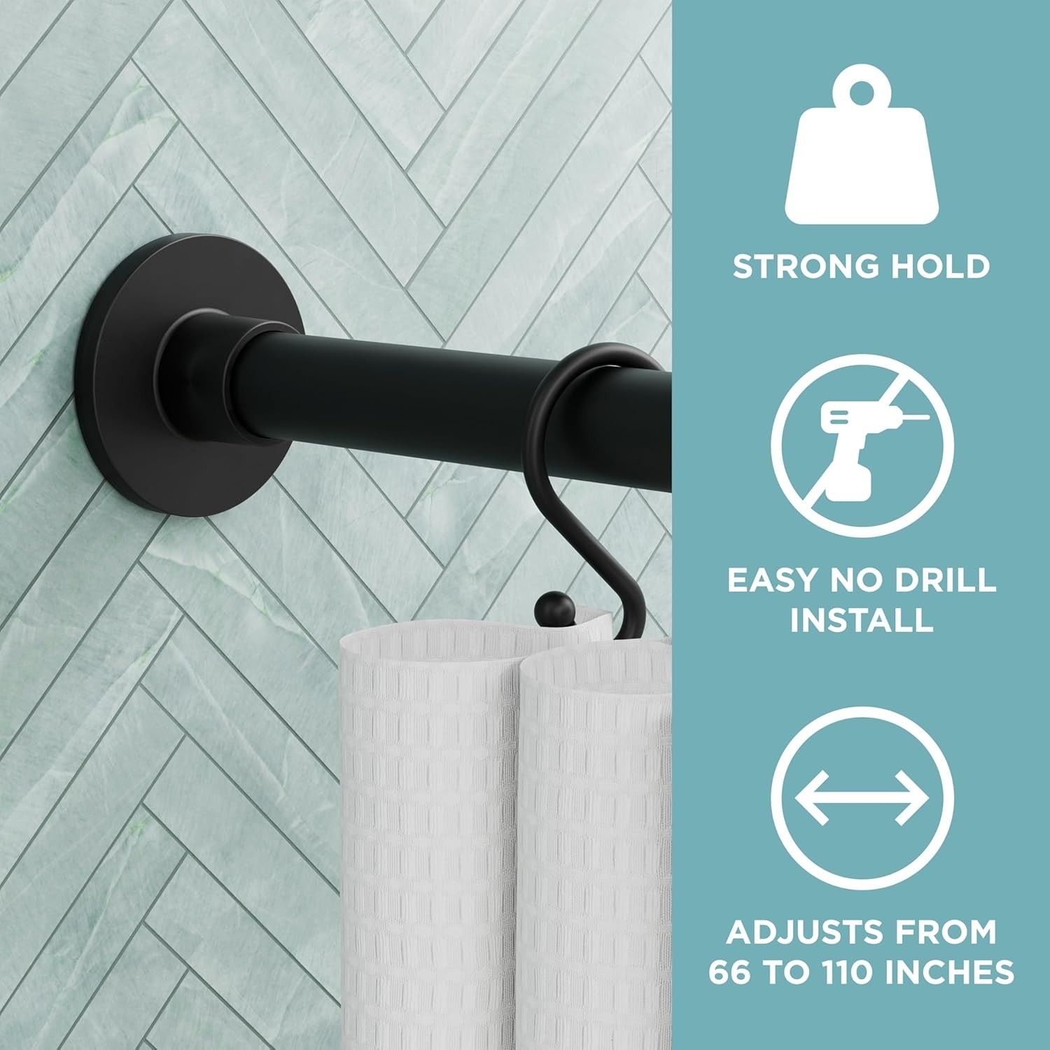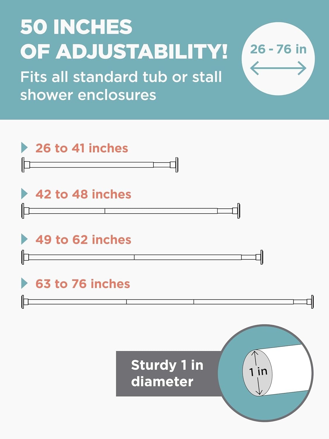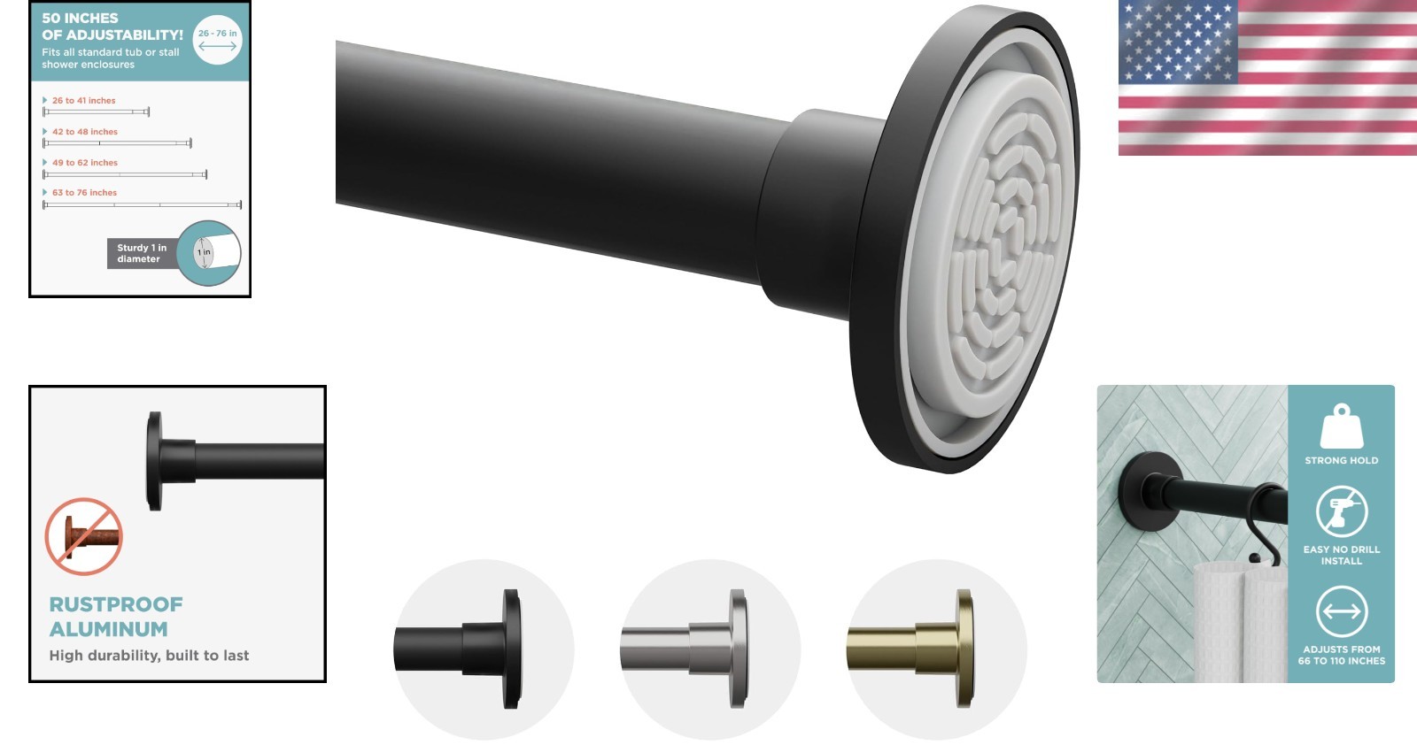 Adjustable Tension Shower Curtain Rod 26-76 Inches - Matte Black Rustproof