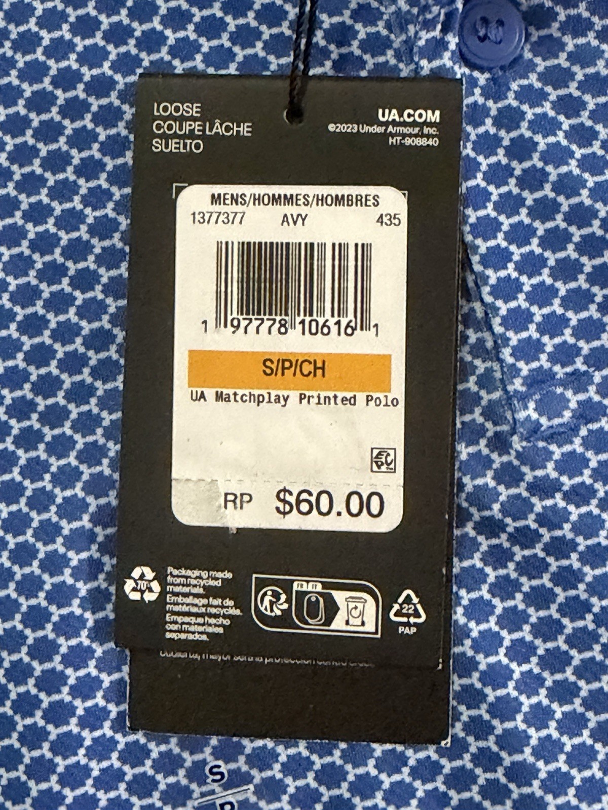 Under Armour Men's Shirts Performance 3.0 Novelty Polo Shirt Printed Blue Size S