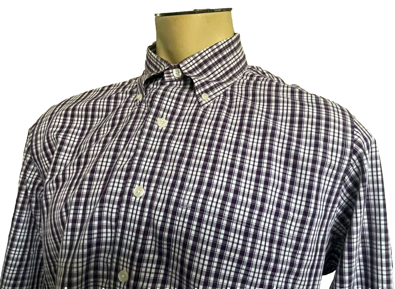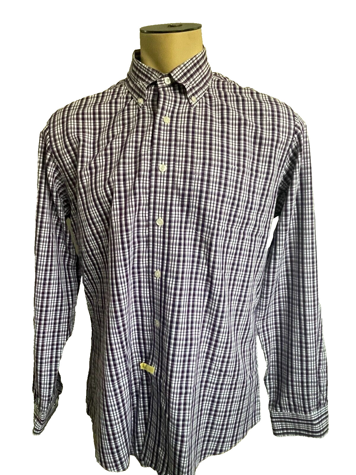 BROOKS BROTHERS Men's Non-Iron Purple Checked Long Sleeve Dress Shirt Size Large