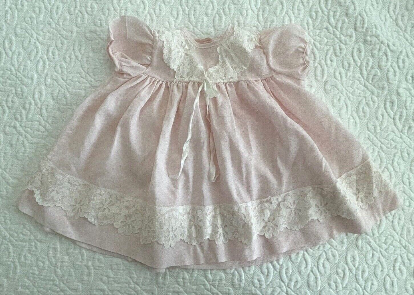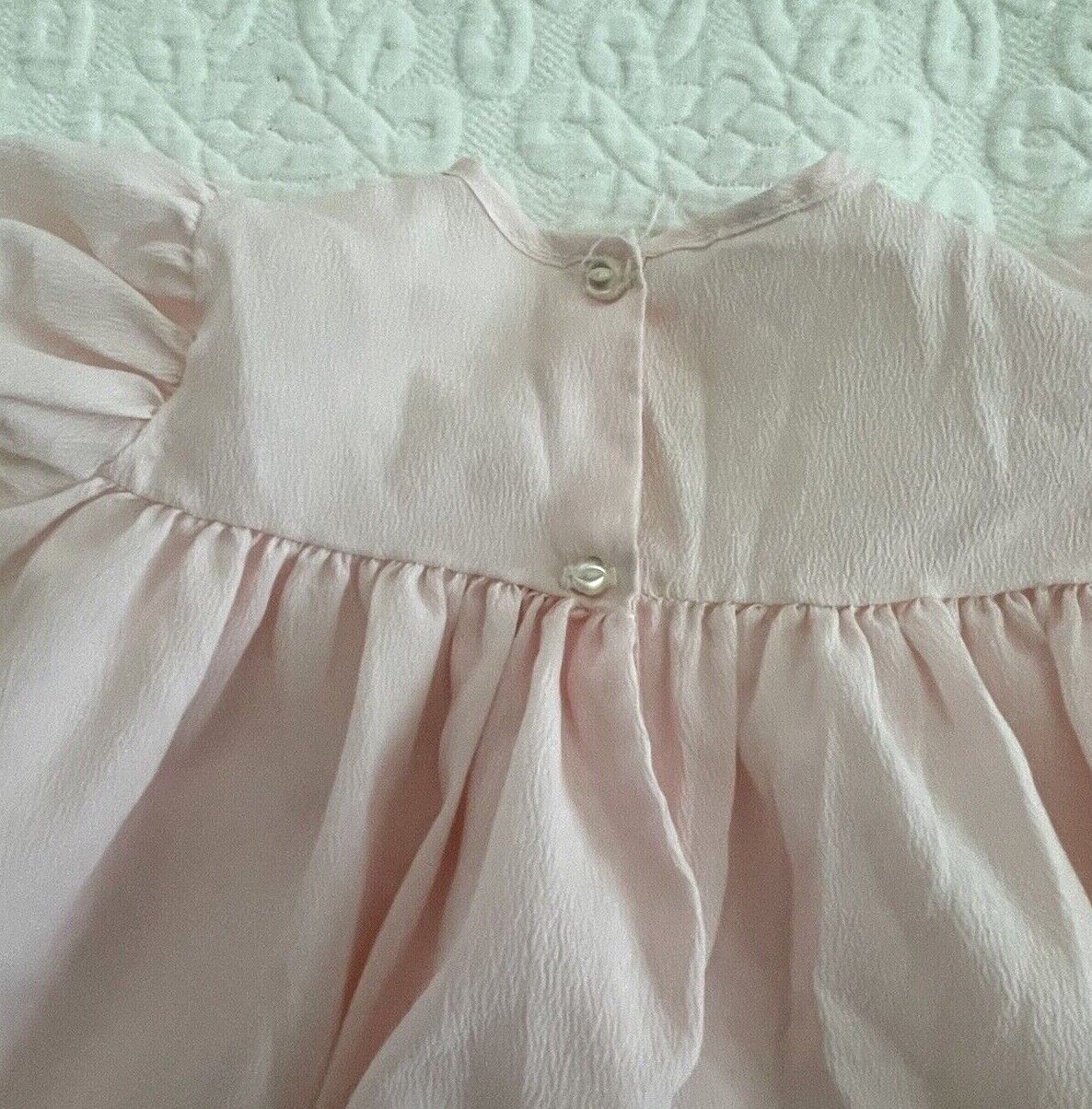 как выглядит Vintage 70s Little Baby Girl 3 Piece Batiste Pale Pink Dress, Slip, Bloomer фото