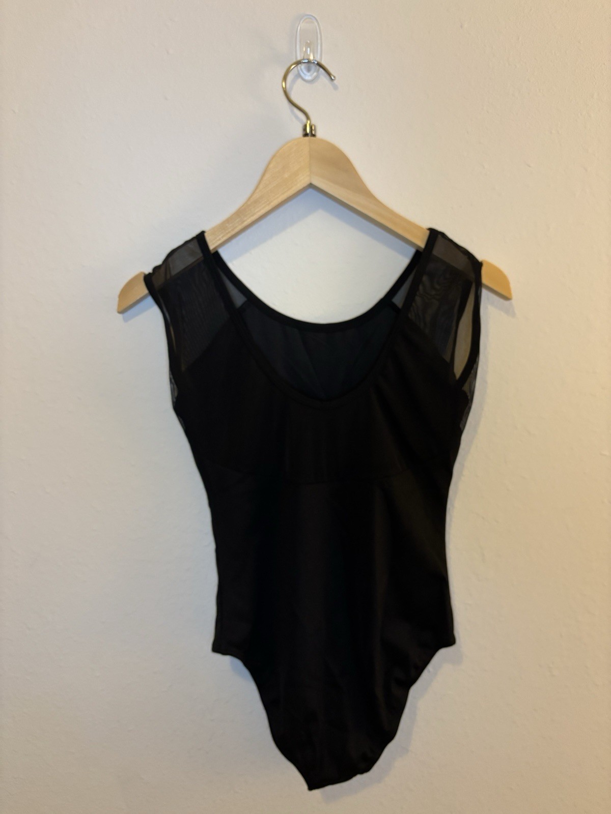 как выглядит Girls Dance Ballet Leotard Mesh Cap Sleeve,Cute V-Shaped 10-12 Years, Black фото