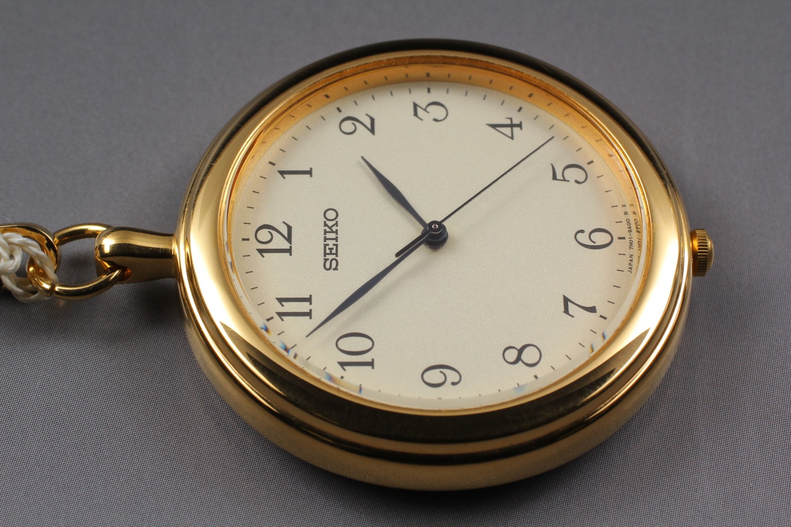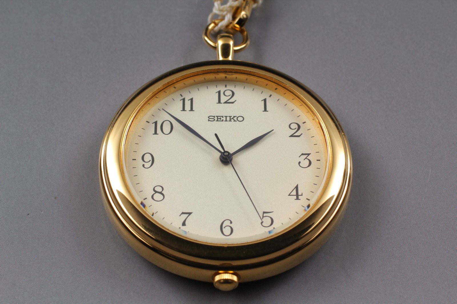 как выглядит Vintage 1991 N MINT Seiko Pocket Watch 7N01-9A00 Gold Round Quartz Mens JAPAN фото