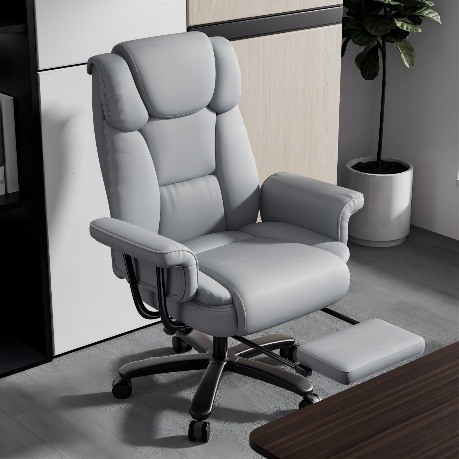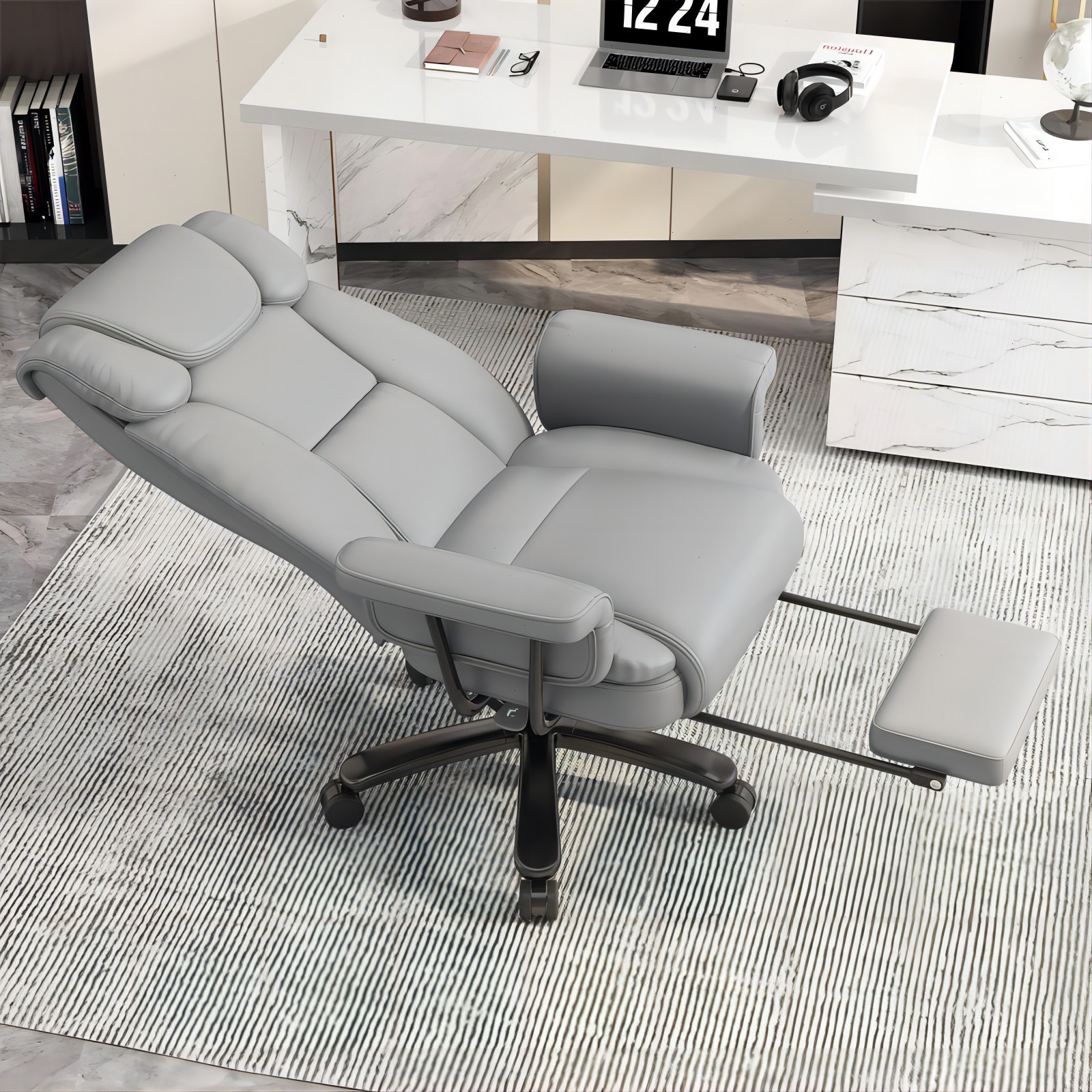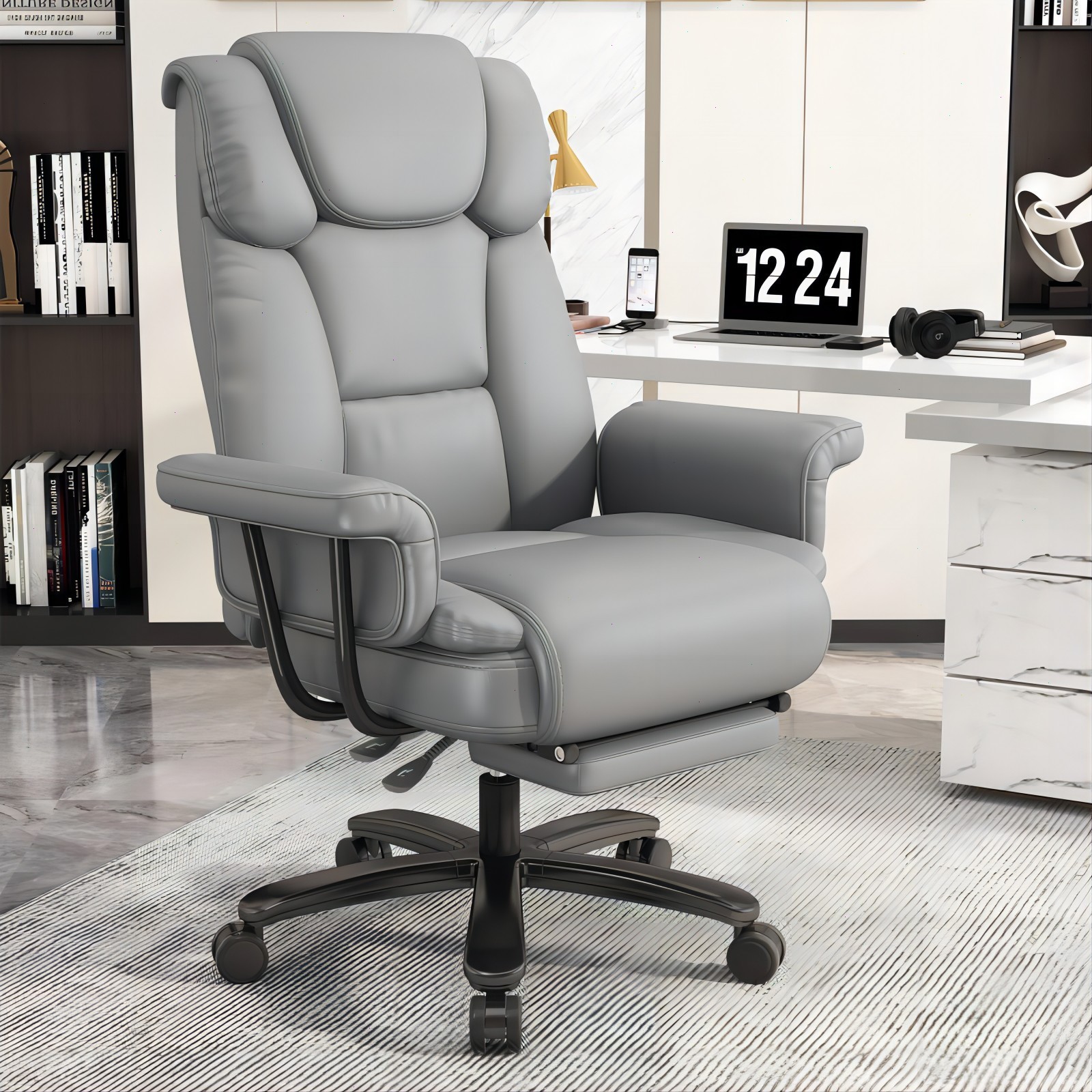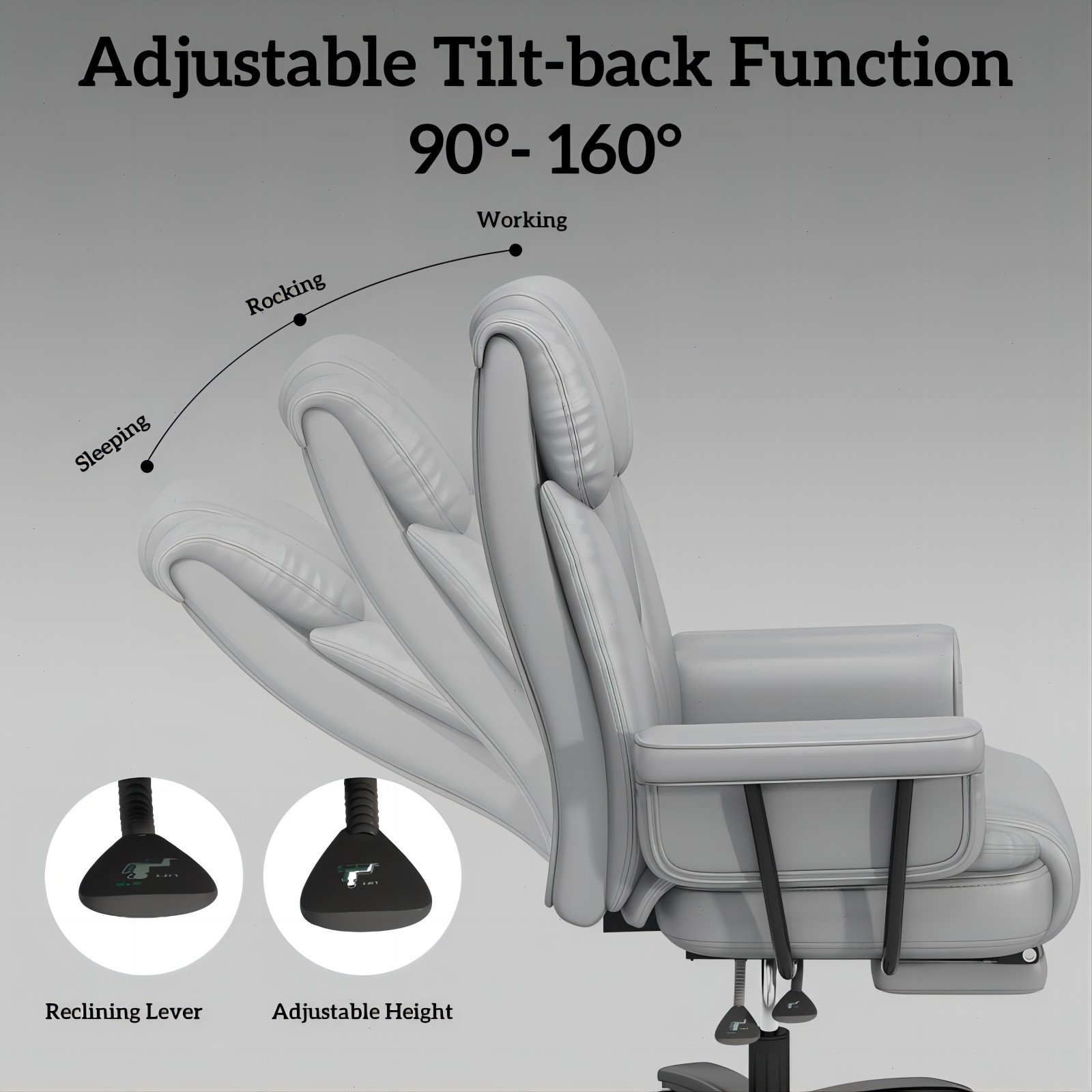 Big and Tall Office Chair 400LBS Reclining Executive Chair with Footrest Gray