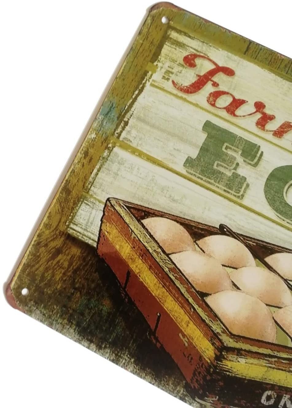 как выглядит Farm Fresh Eggs Tin Metal Signs Home D cor Art Chicken Coop Kitchen Cottage 12x8 фото