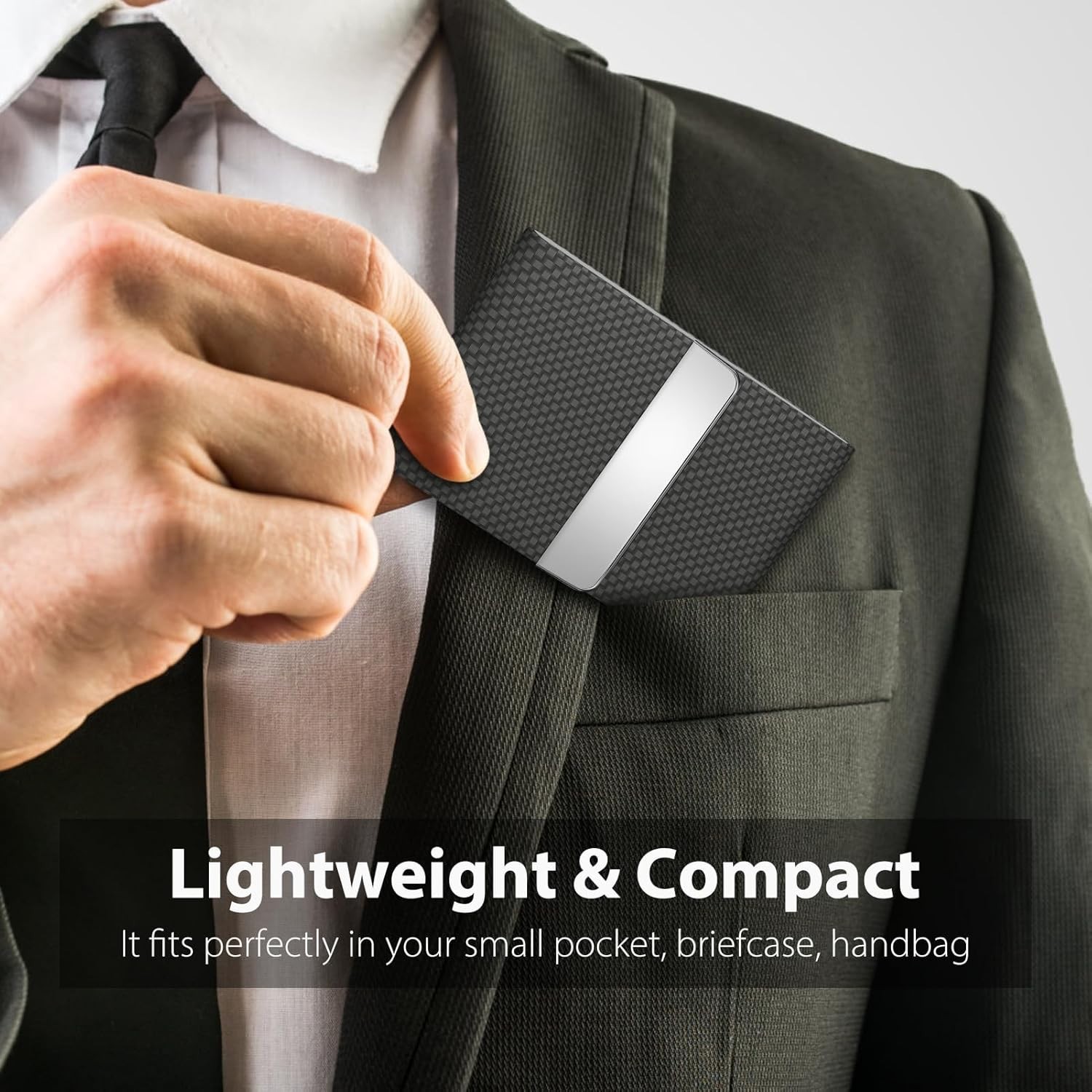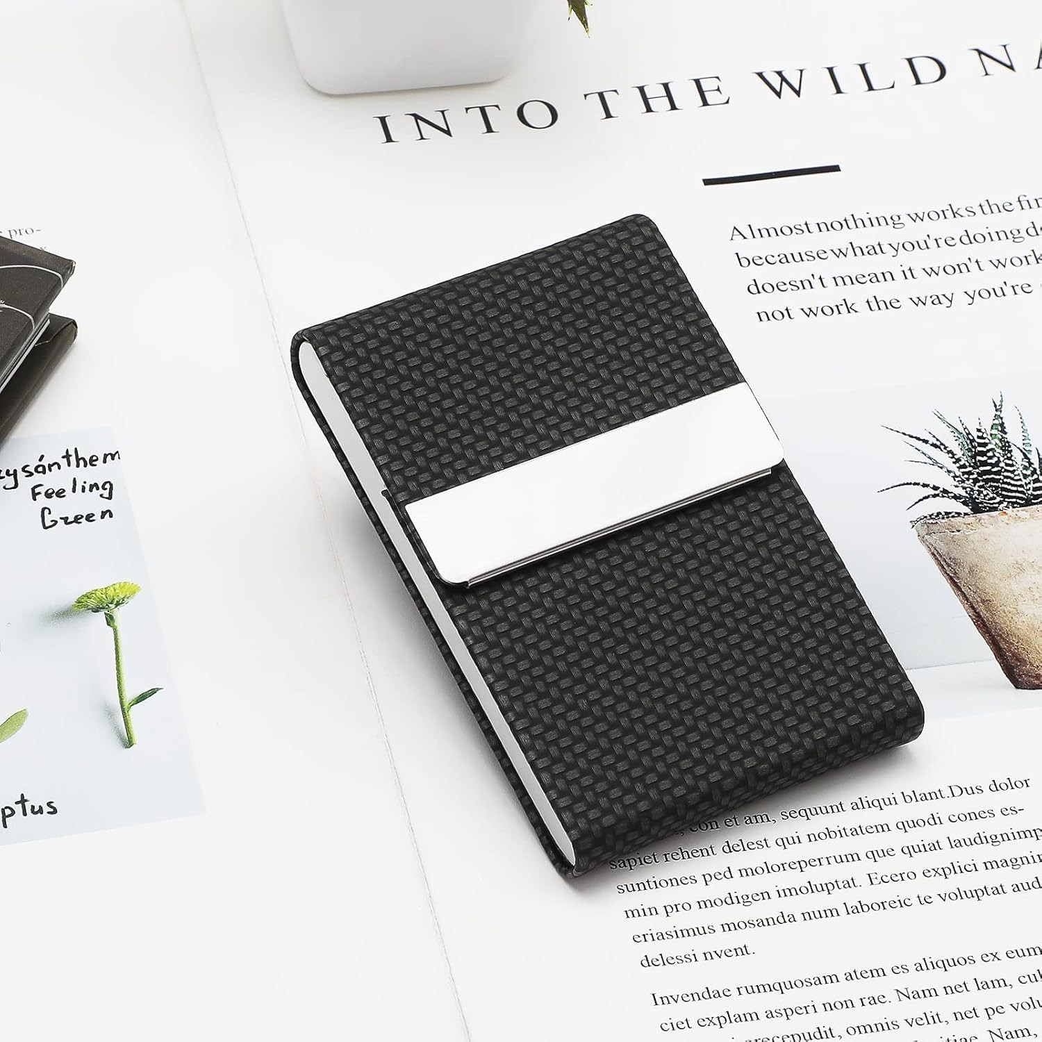 Leather Business Card Holder Slim Metal Pocket Wallet with Magnetic Closure