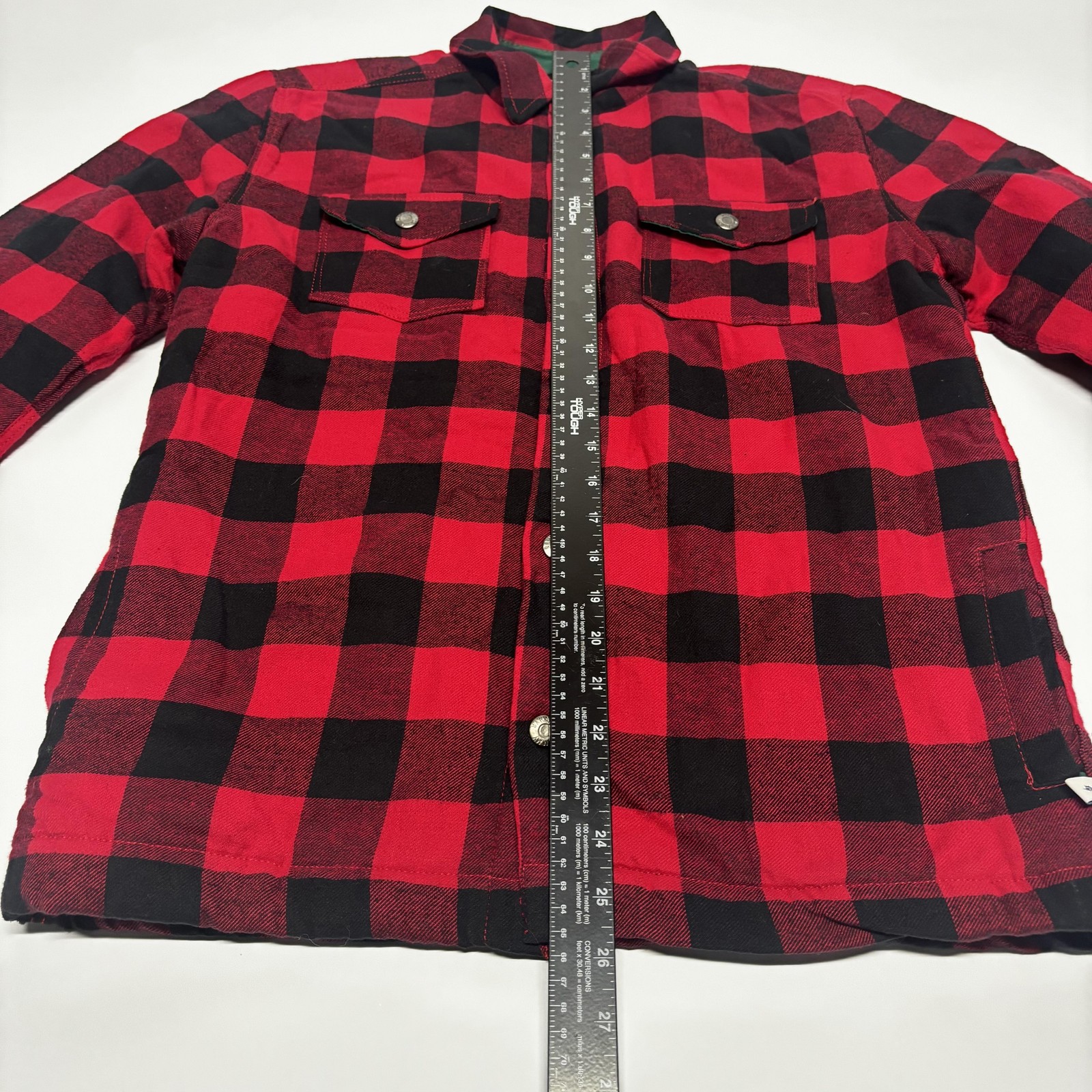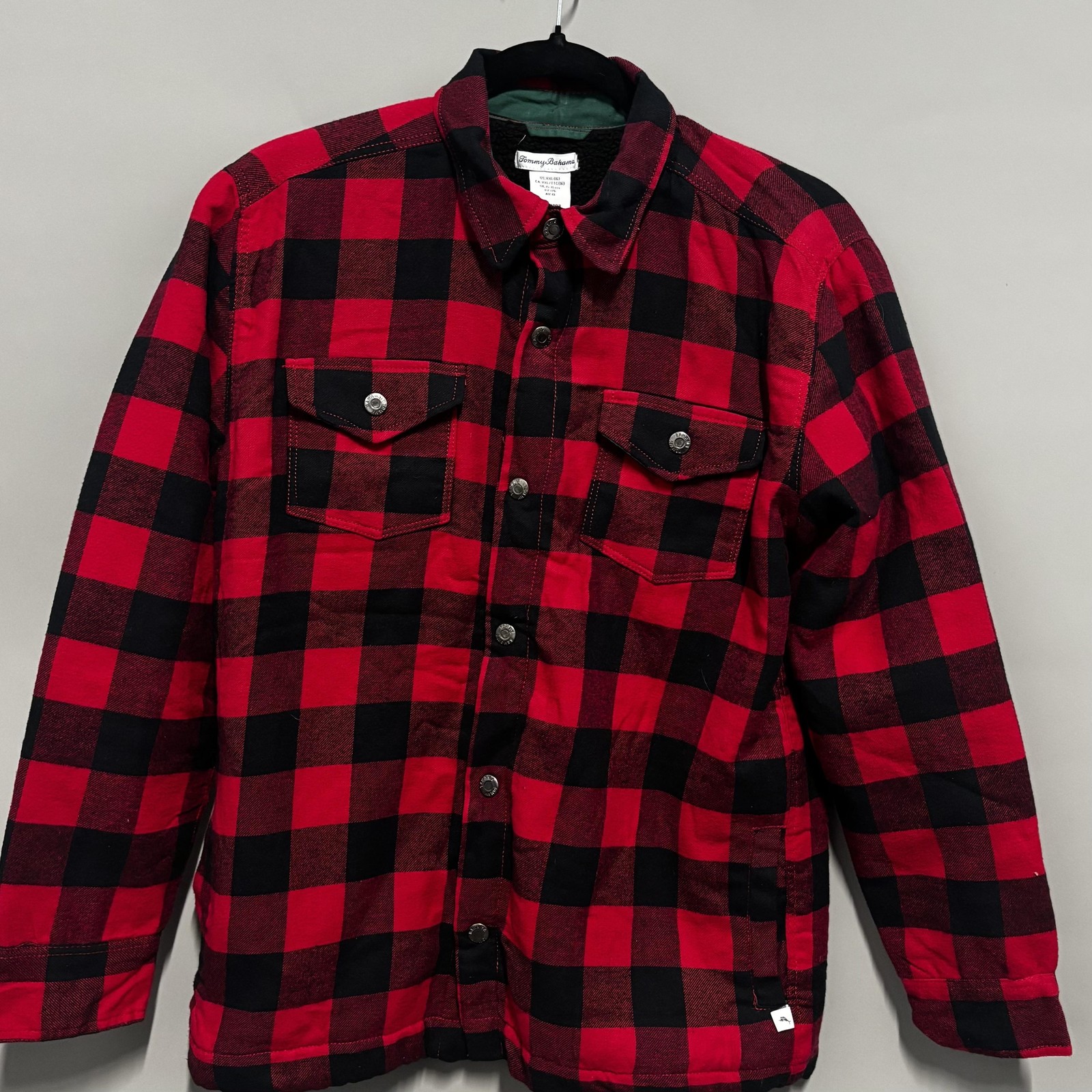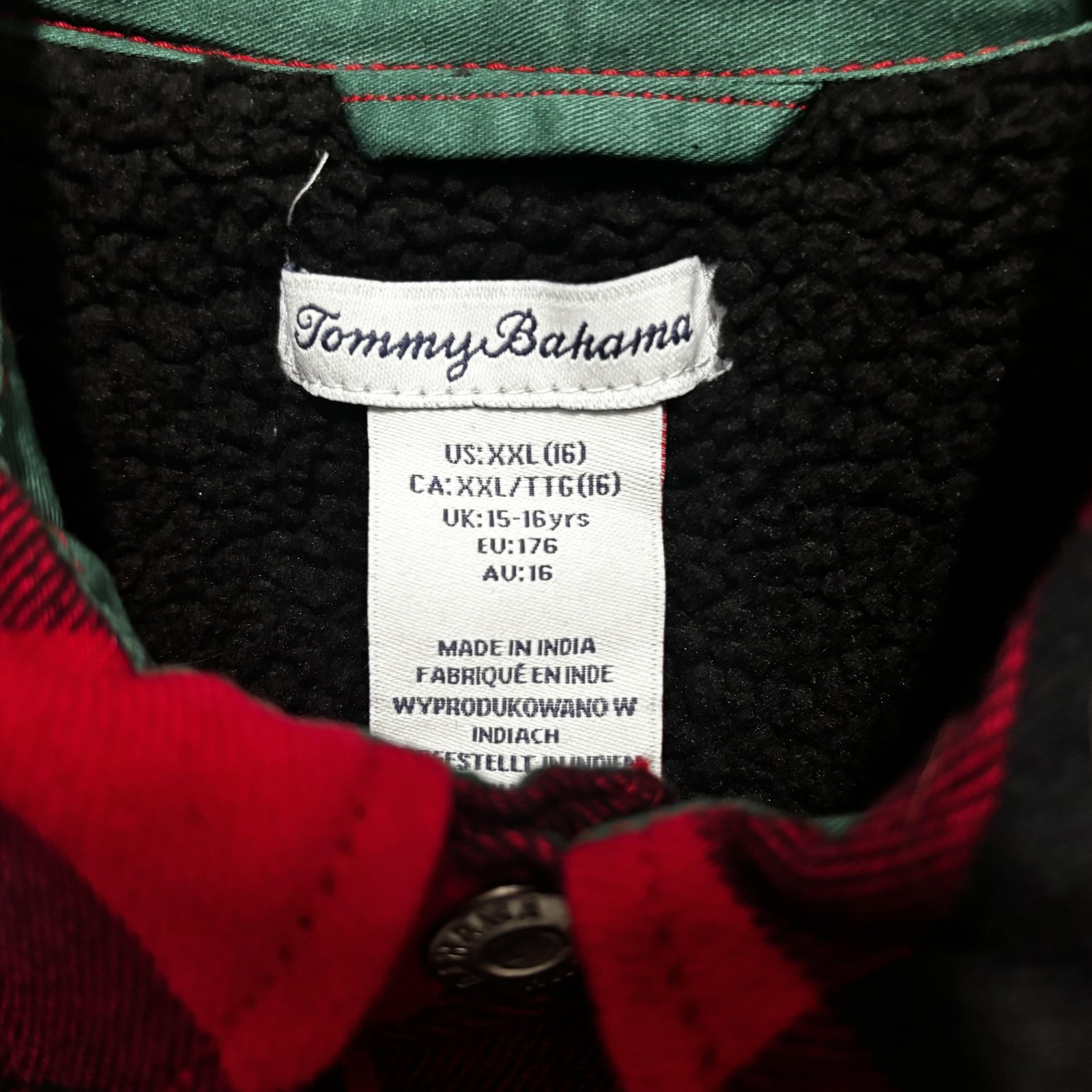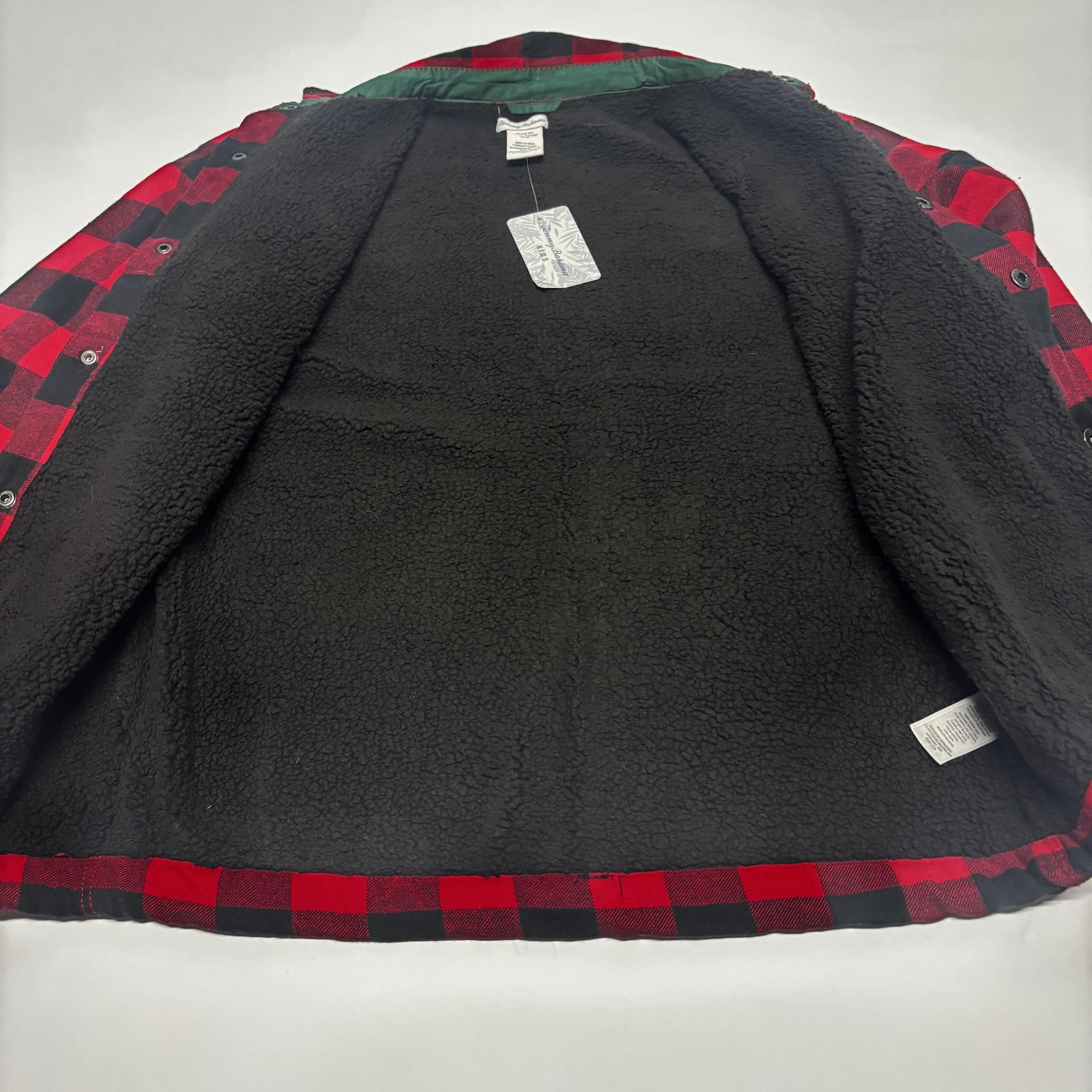 как выглядит Tommy Bahama Kids Shirt Jacket Youth XXL 16 Red Black Buffalo Plaid Sherpa Lined фото